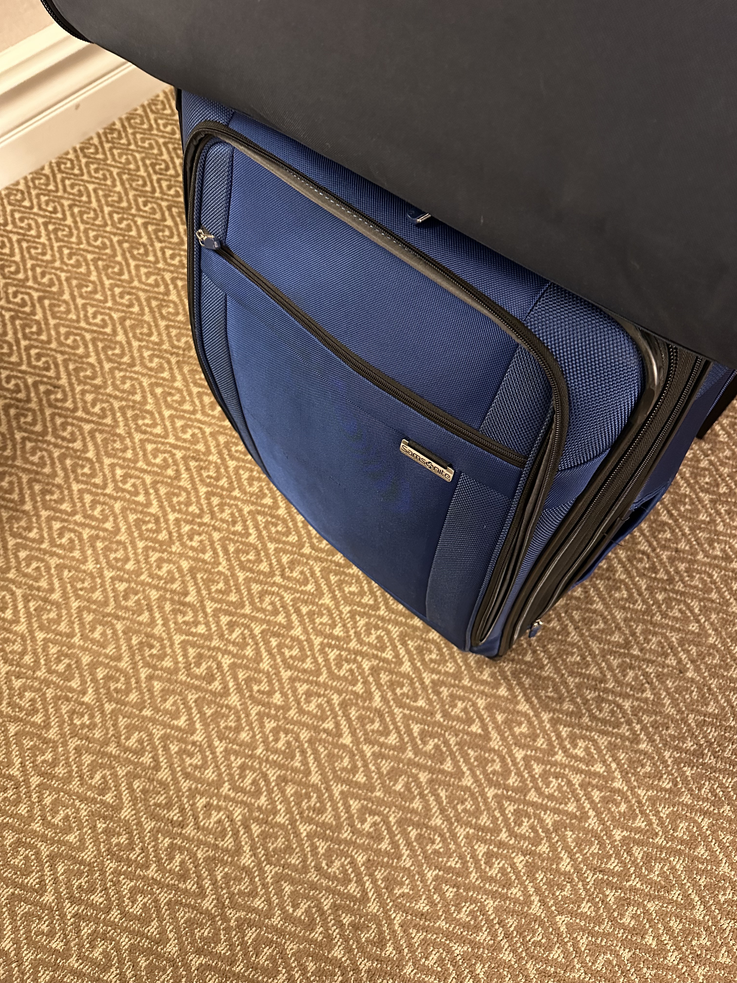 I collected my luggage and checked out of the hotel. Apparently during the flight to London my checked baggage had the zippers ripped off one of the smaller pockets (not the main one and not structural damage to the bag overall). The zipper itself is still there but the pull tabs on it are gone and the pocket tends to flop open. I was concerned about further damage which may be more severe and asked the bellmen to take a look for me.