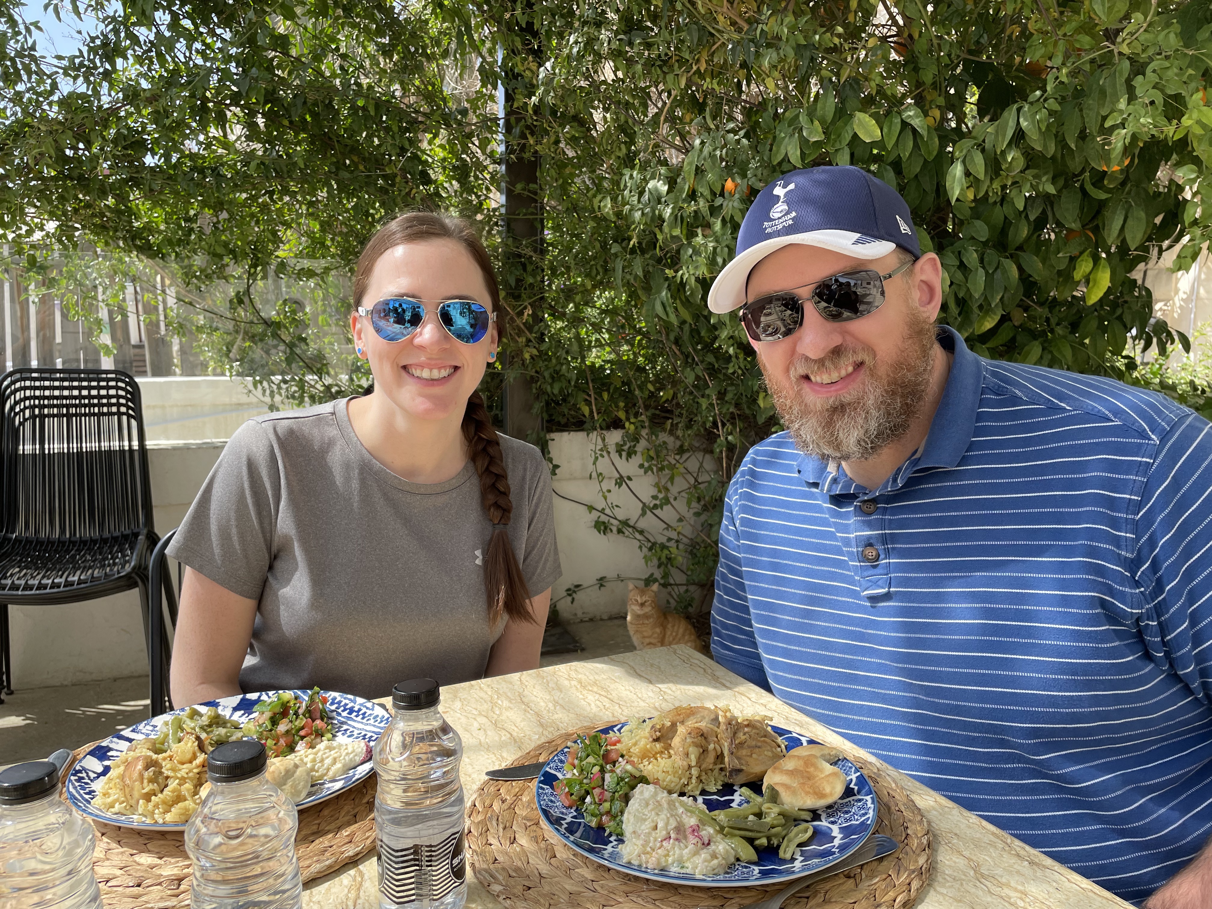 Reflecting on my first full day in Jordan I noticed there are a ton of feral cats that wonder freely. Most steer relatively clear of people but some will get closer. I have two “not my favorite” takeaway items. These two things are not safety concerns and they aren’t terrible; by no means are they deal breakers for me. They are things I observed that I didn’t expect or am a little saddened by. First, there is a fair amount of loose trash in the street. Think plastic bags, single use coffee cups, styrofoam, etc. Jordan has been dry and breezy so these things blow about in the street. I see this to a lesser extent in the US and other countries. This saddens me because Jordan is a beautiful country and the trash is an eyesore. Jordan may look, sound, and smell different than my home country, but it is beautiful nonetheless. Secondly, smoking is still prevalent and permitted indoors at restaurants, etc. This one has been a harder adjustment for me due to the strong smell affecting my allergies. I think this will become somewhat less noticeable as the weather continues to improve, people dine outdoors at restaurants, and windows and fans are used for better air flow and ventilation. Again, neither one is offensive enough to be a deal breaker and I would happily come back (even if it is still my first day here!).