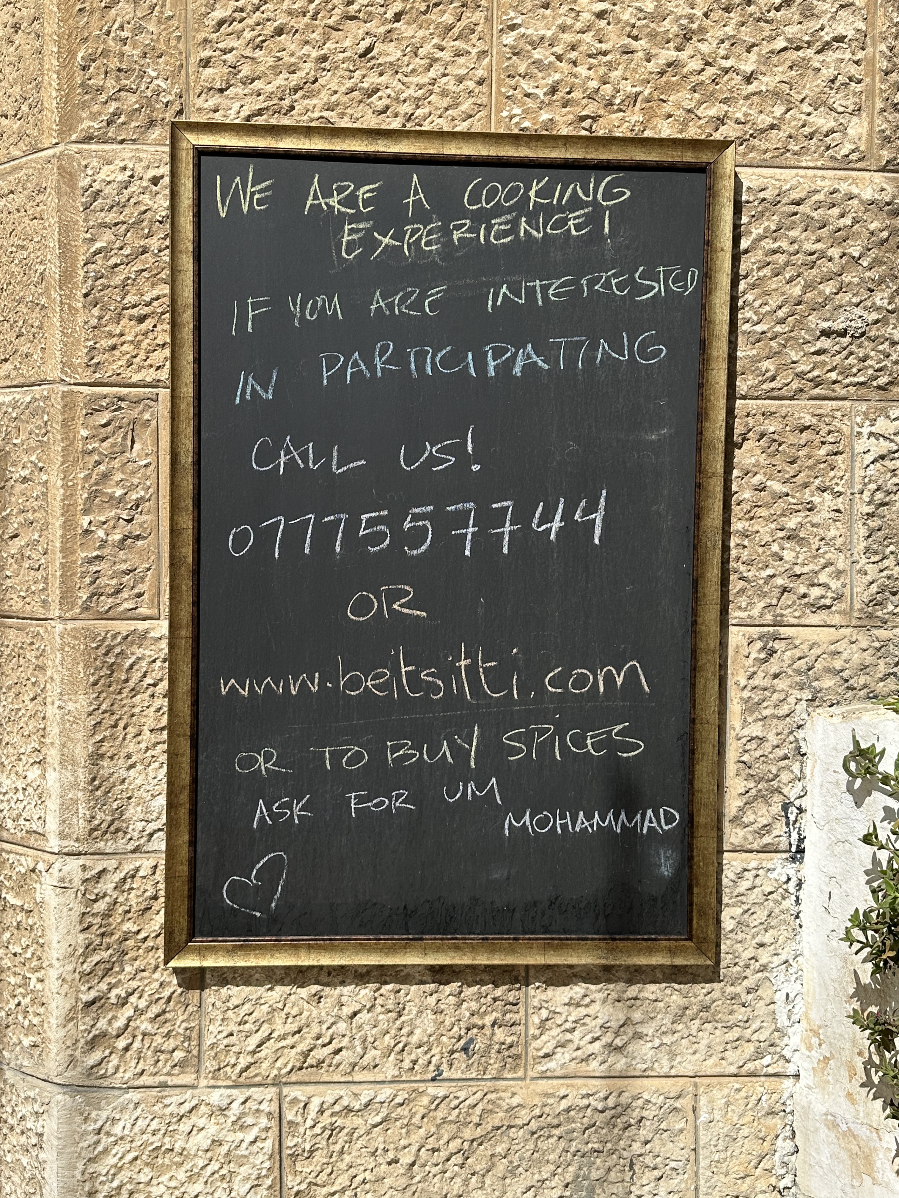 We heard the call to prayer while at Beit Sitti. While unfamiliar to me, and in Arabic, I found it to be oddly calming. I don’t know what the words mean but the tone is soothing in a way that is difficult to explain. It is much different to hear it in person compared to hearing it in movies with the cinematic crackle and pop of the loudspeakers. In person it is much more peaceful and soothing.