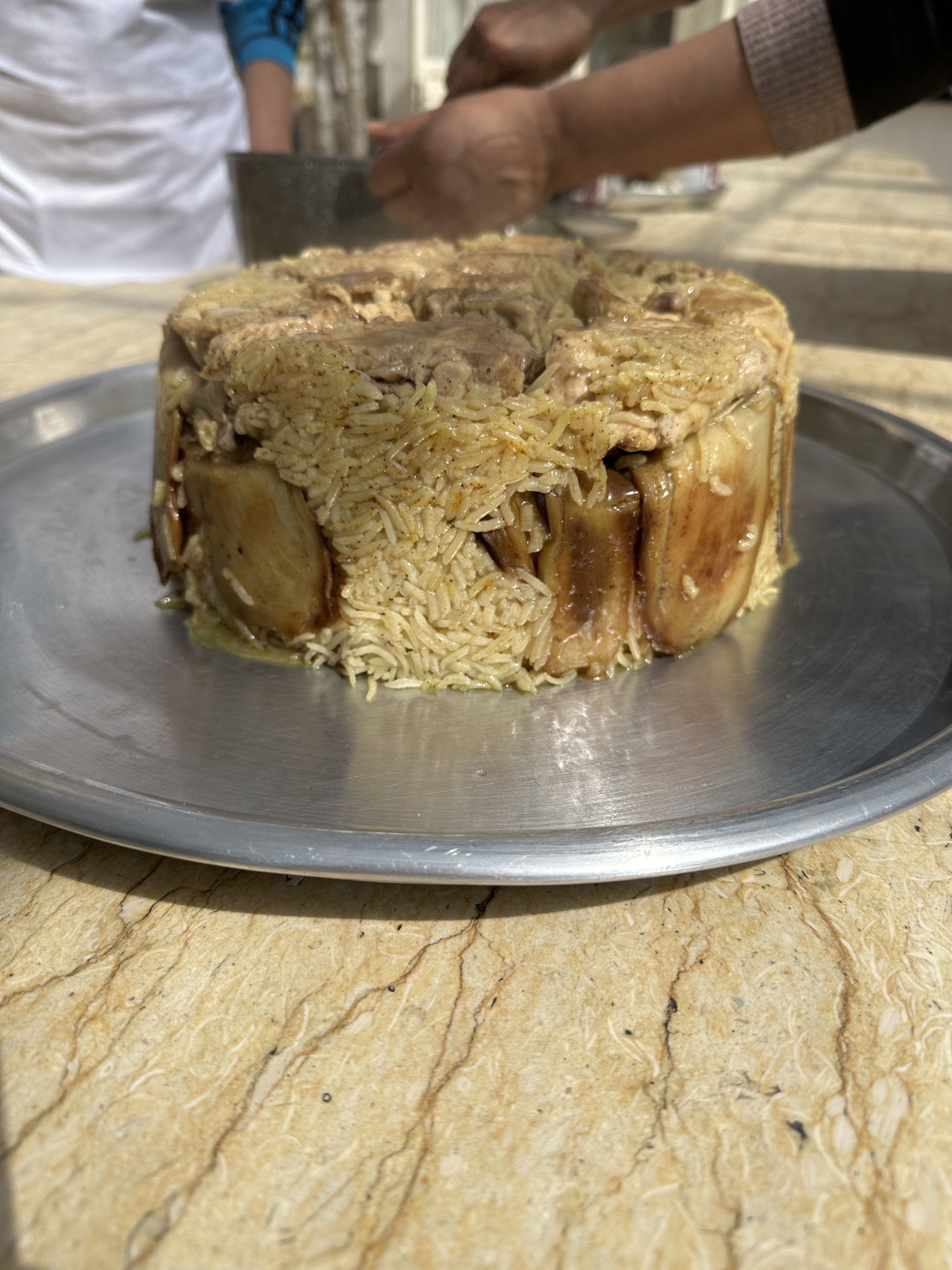 - Maaloubeh which is a dish of chicken, rice, eggplant, and cauliflower.