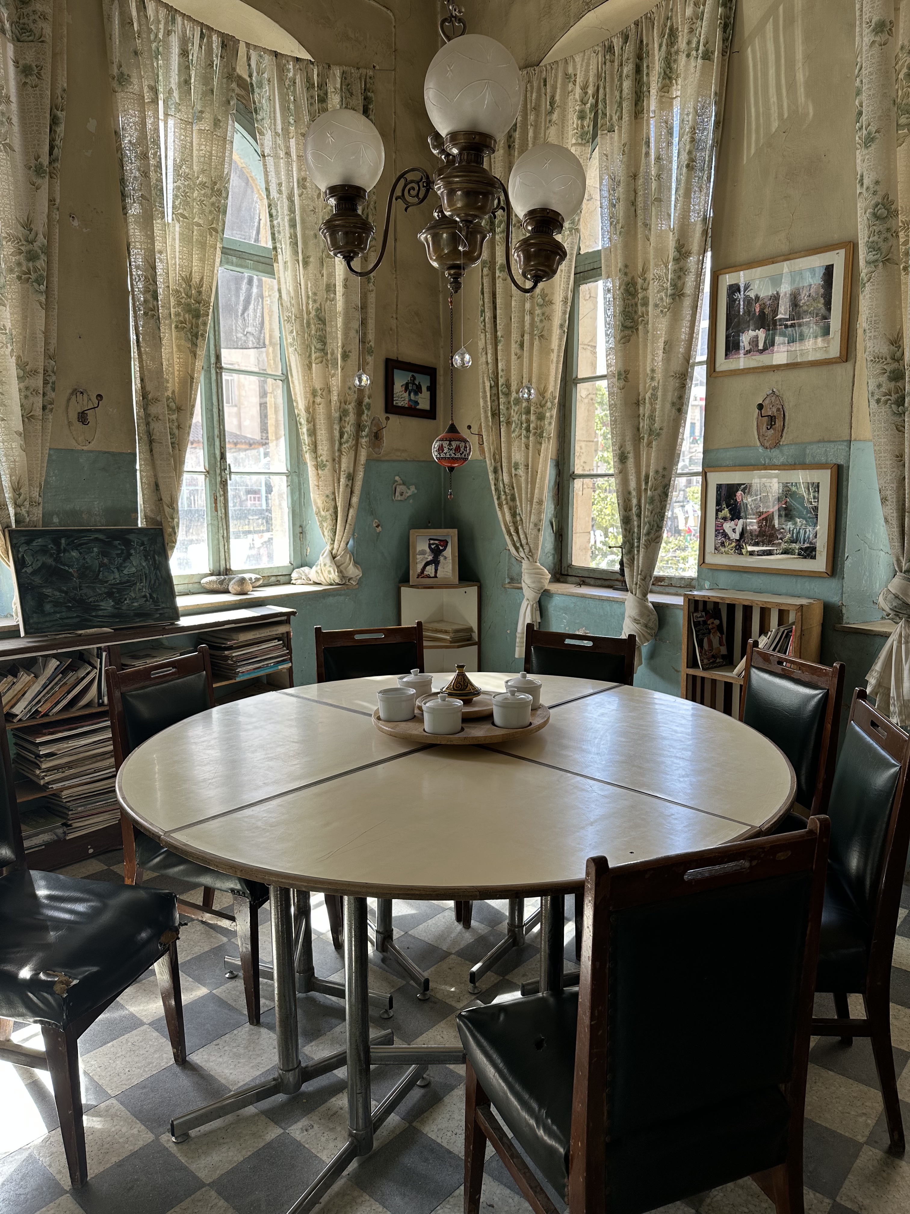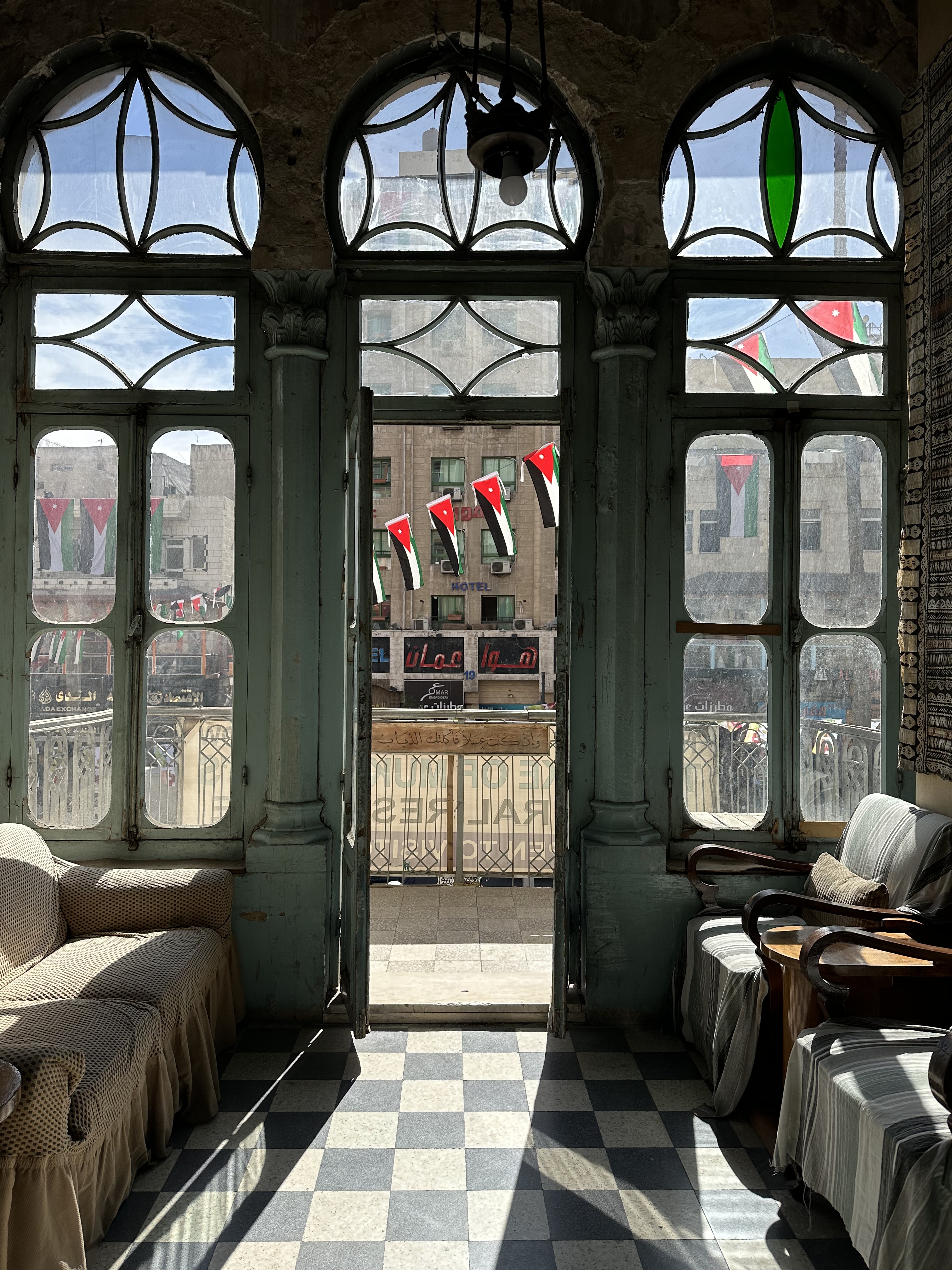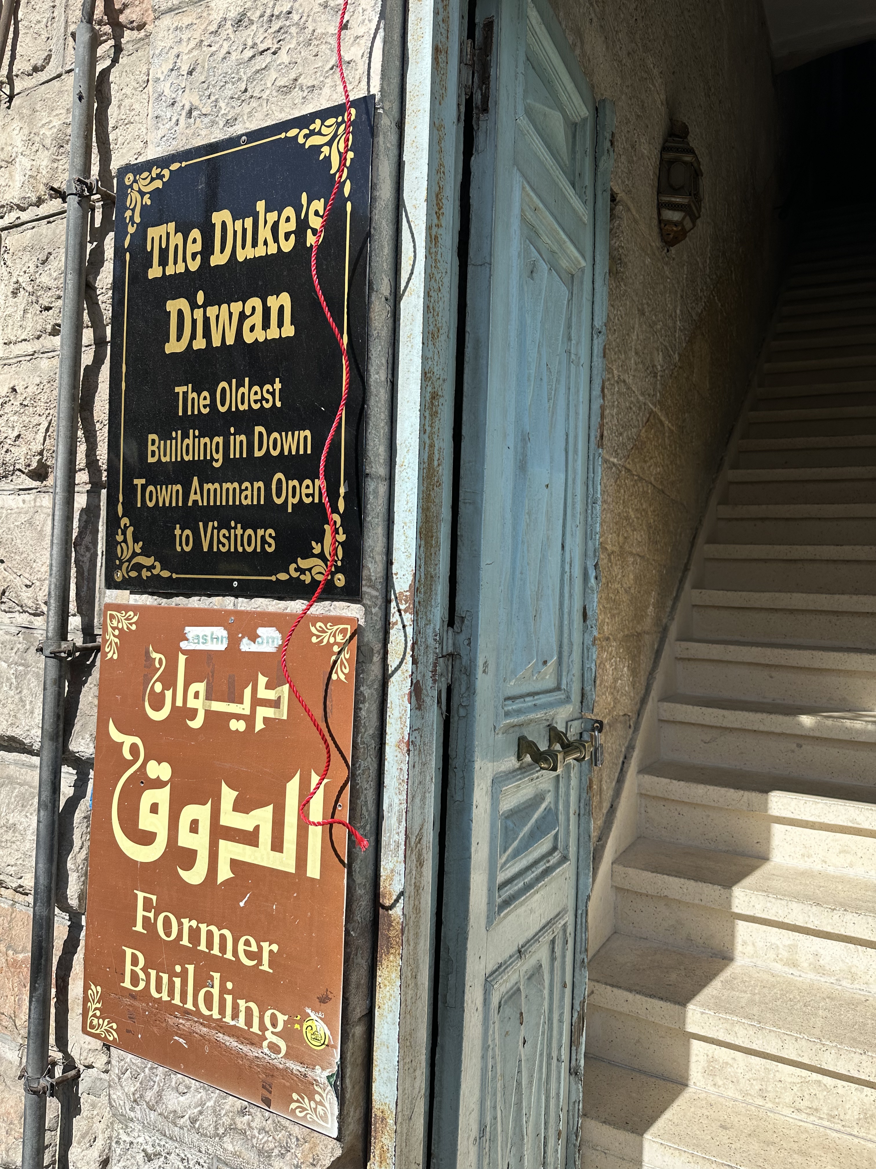 We had a walk back to the car after lunch so we stopped in at Duke’s Diwan on Al Malek Faisal Street. The Duke’s Diwan is the oldest building in downtown Amman open to visitors. Built in 1924, this historic townhouse has served as a post office, a ministry of finance, and a hotel. A Jordanian businessman, who happens to be the duke of the village of Mukhaybeh, purchased the property and restored it with period furnishings. There is a collection of old photos and newspaper clippings giving a glimpse of Amman’s history.