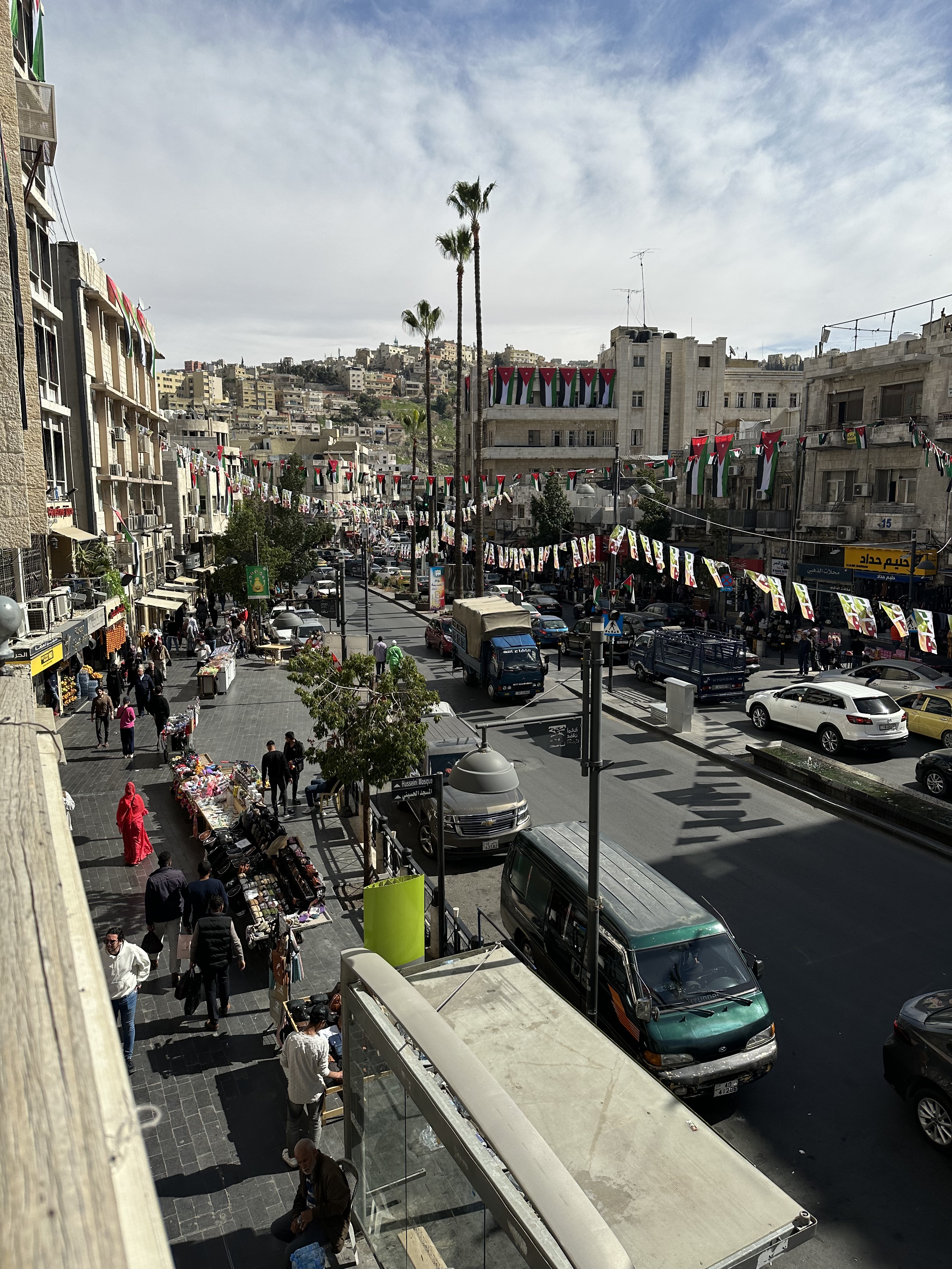 Today was my first real experience with how traffic works in Amman and it is … interesting. Though I never saw an accident, drivers don’t follow any set of rules I have ever heard. As my friend described it, “driving in Jordan is a beautifully choreographed ballet of chaos” and I cannot think of a better or more accurate description. People change their speed from 70 km to 40 km because they are on their phone while driving. There seems to be no concept of a traffic lane and, to be fair, there are no lines painted on roads. It’s common to see a road that is meant to be two lanes wide actually be used three or four lanes wide.