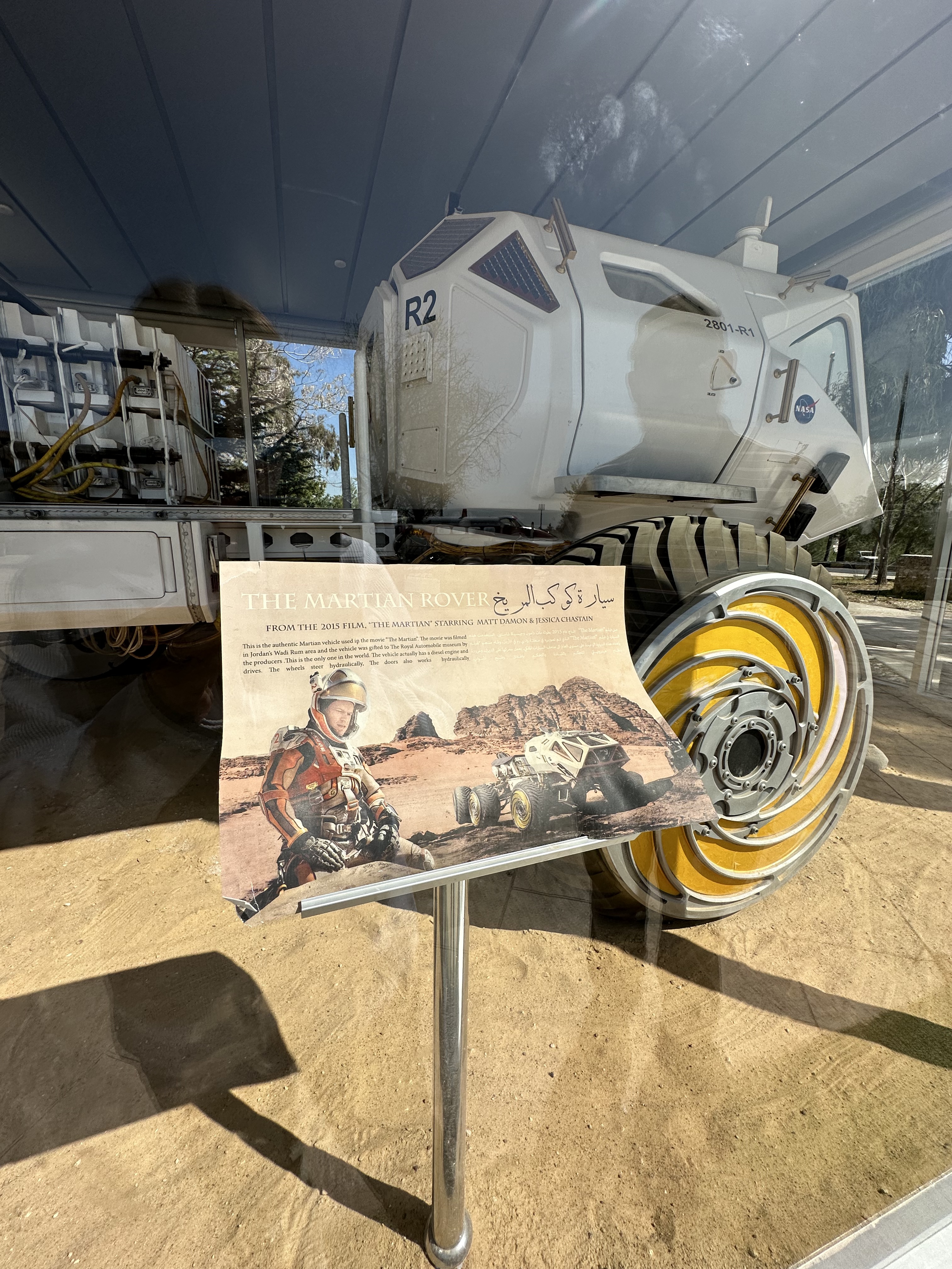 There is also an intriguing contrast of luxurious antiques with modern sportscars. Displays throughout the museum highlight the automotive advancements developed by Harley-Davidson, Cadillac, Excelsior, Humber, Aston Martin, Mercedes, Porsche, Rolls Royce, Lamborghini, and Ferrari, to name a few. Hollywood also makes an appearance at the museum with a speeder from Star Wars Episode IX – The Rise of Skywalker and the rover from The Martian on display. The Royal Automobile Museum offers plenty of signage and video footage, telling the story of modern Jordan (and world history) through the lens of the late king and his unique collection.
