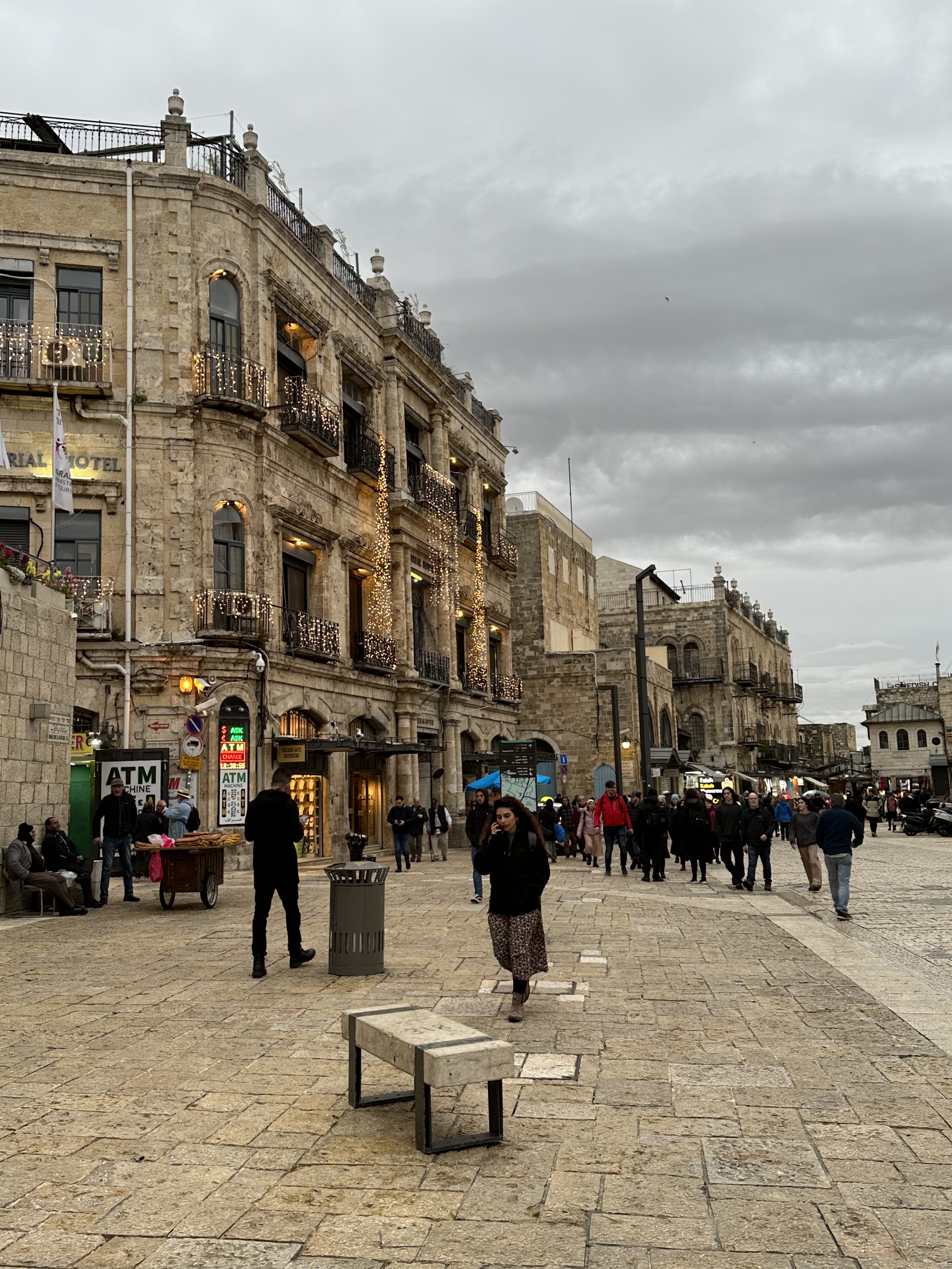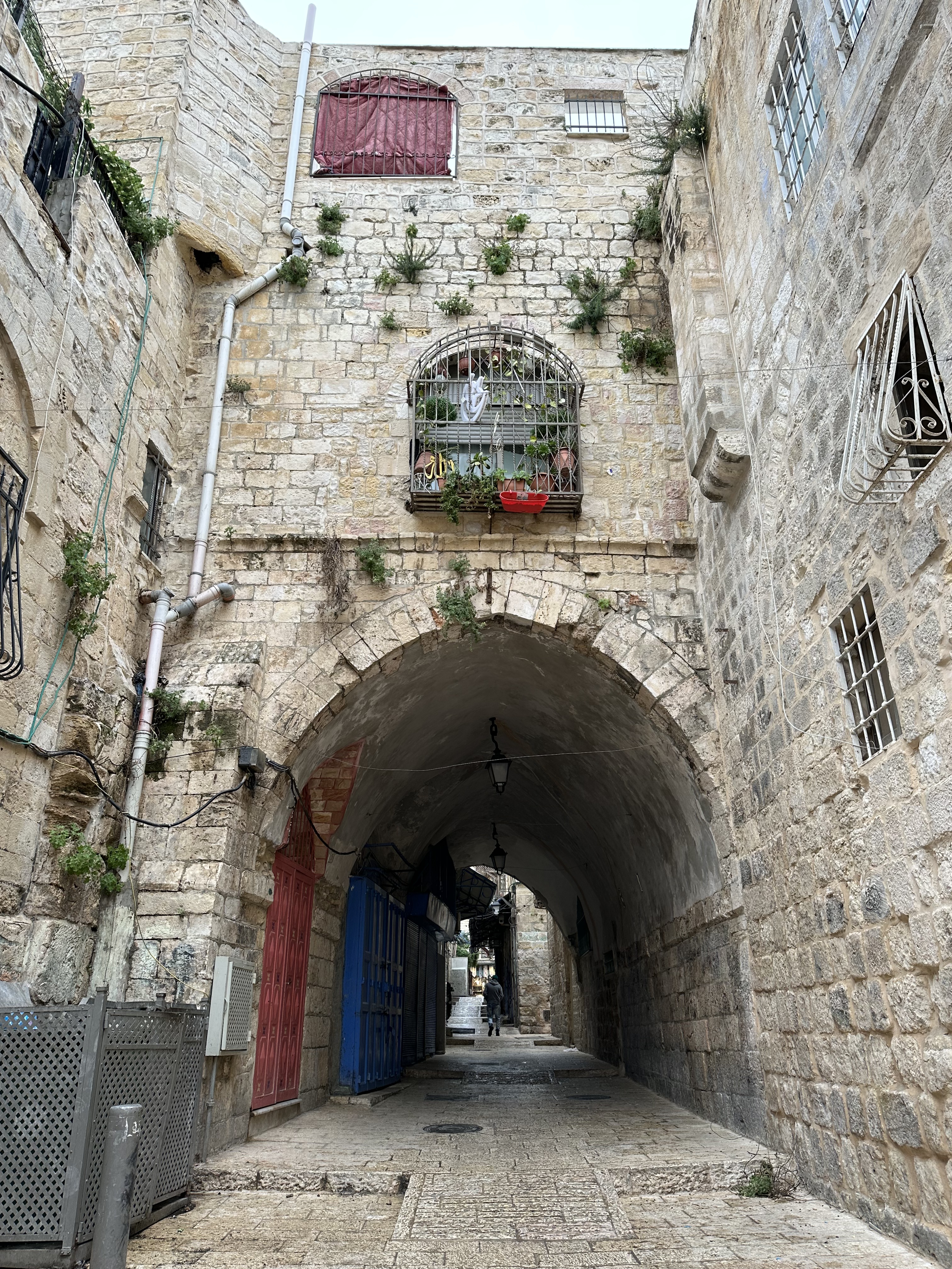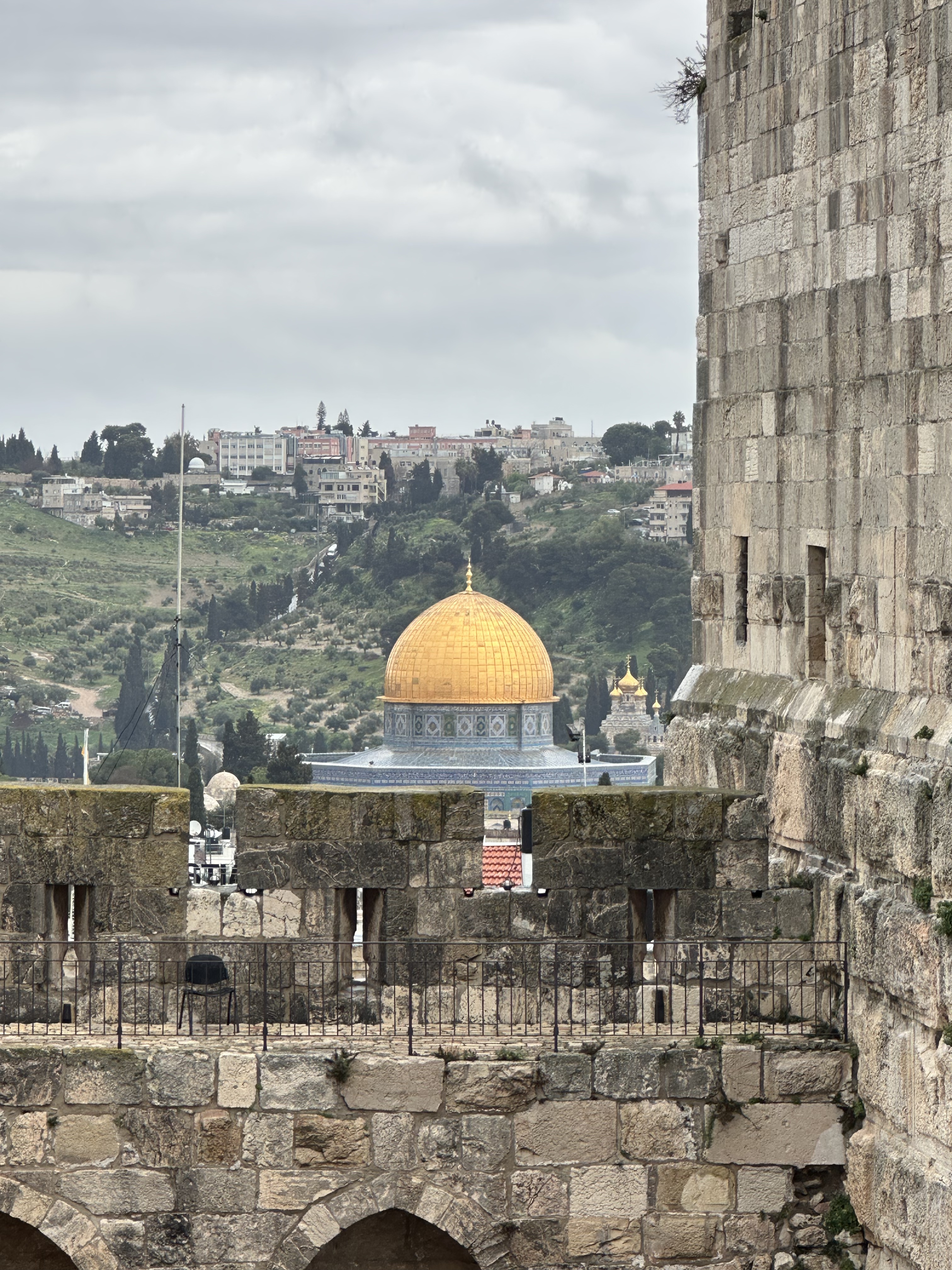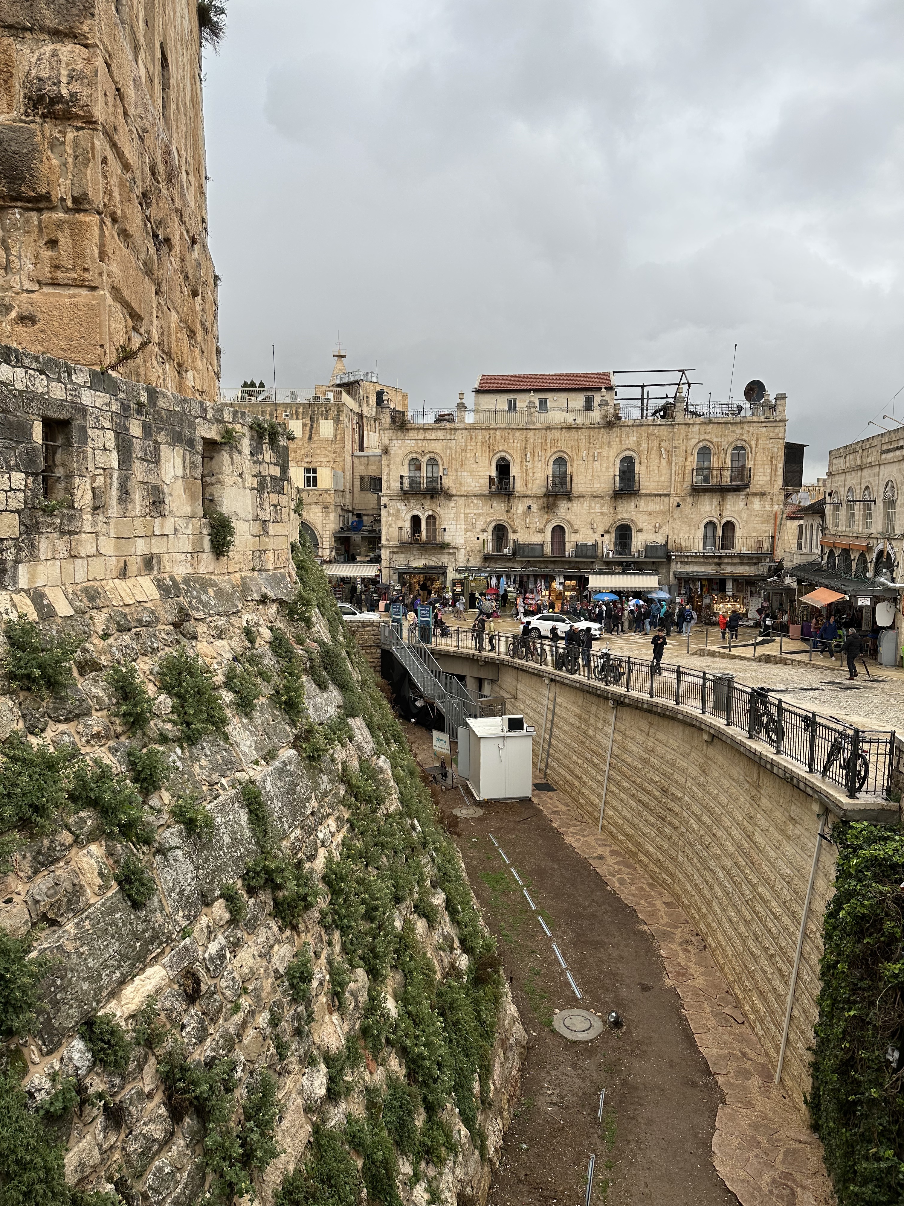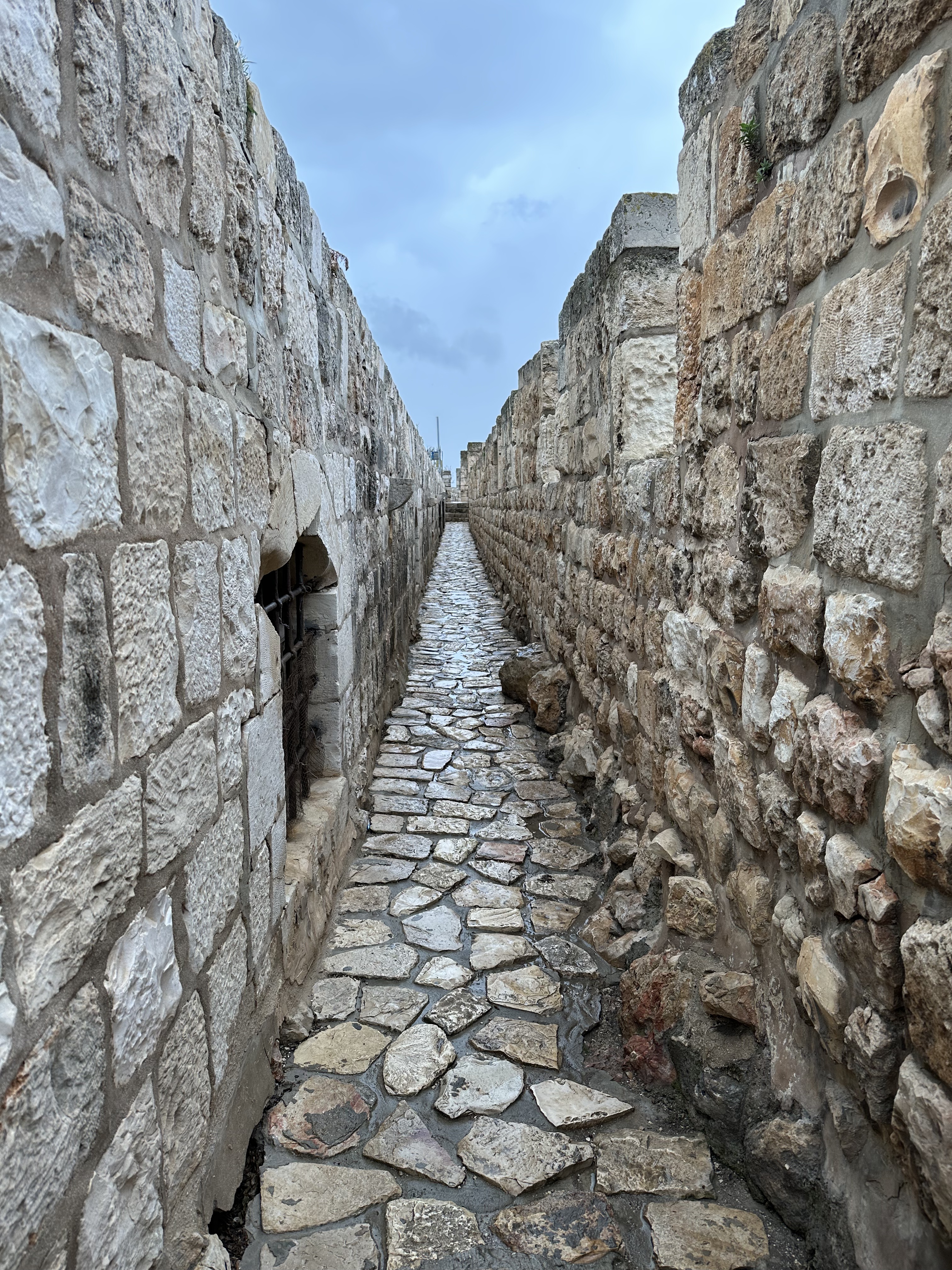 The massive golden dome of the Al Haram Ash Sharif (the Noble Sanctuary as it is known to Muslims) or Har HaBayit (Temple Mount as it is known to Jews) is visible from multiple viewpoints. A section of the Old City ramparts is accessible from the citadel. We planned to complete at least a portion of the ramparts walk but decided against the exposed position when it began hailing and raining heavily. We waited out the worst of the storm inside the citadel before we decided to find some lunch.