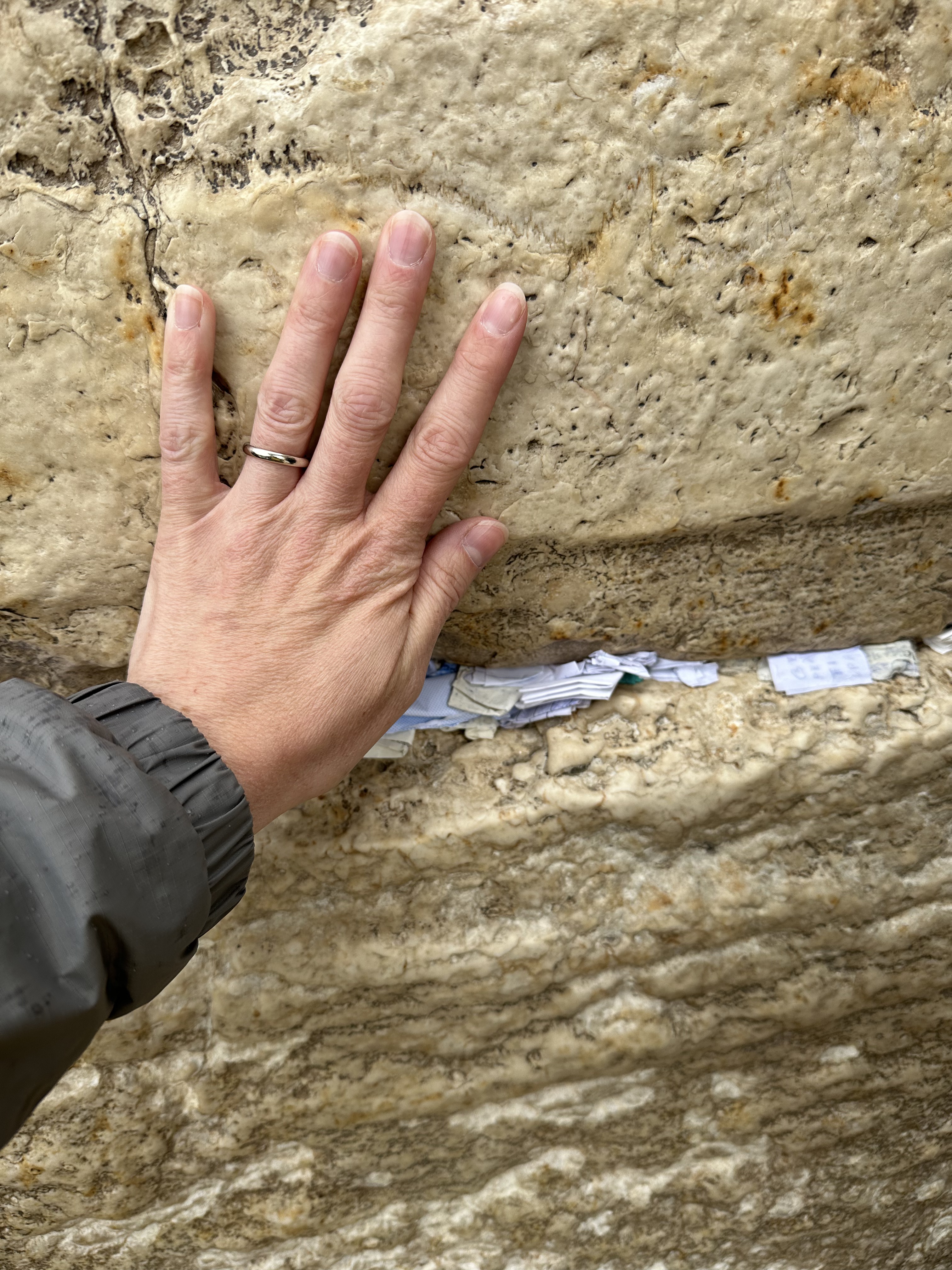 I was fortunate enough to visit the women’s section and lay may hand on the wall. The women waited politely for their turn to pray at the wall, many leaving prayers on small bits of paper which they tucked into cracks and crevices between stones. Some believe that a written prayer left between the stones has an above average chance of being answered. These prayers are never removed from the wall. Caretakers will periodically gather any prayers that have fallen to the plaza and they are interred with the next deceased person who is buried on the Mount of Olives. My experience at the Western Wall was calm, peaceful, and reflective. I appreciate and respect the deference afforded to every individual to have their moment of prayer. The Western Wall is my favorite part of my visit to Jerusalem, in part due to the history, but mostly because every single person there was able to have a peaceful and private prayer and experience.
