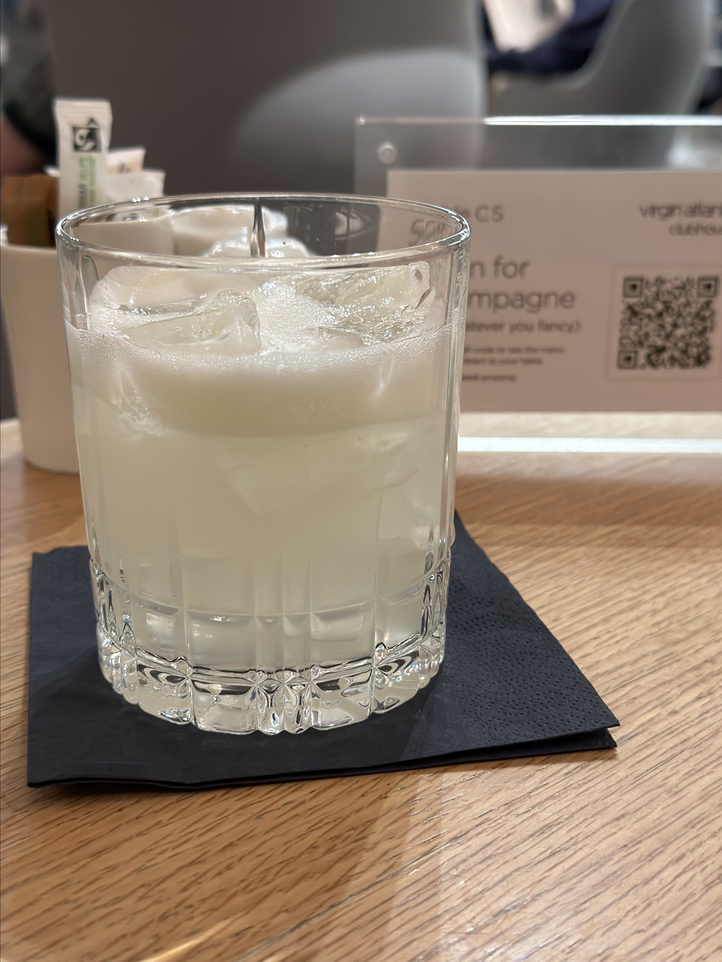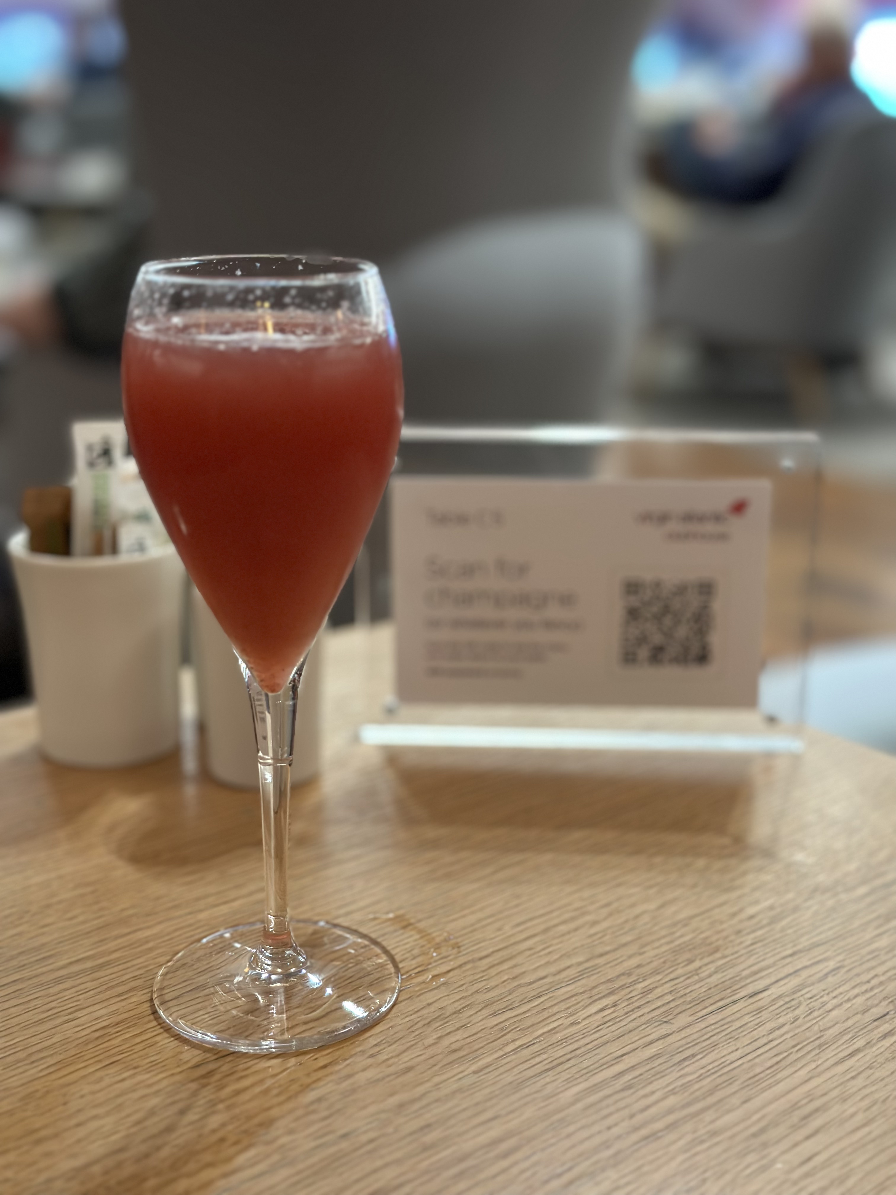 I have access to the Virgin Atlantic lounge due to the partnership with Delta so took I advantage of that. The lounge is very nice, clean, and quite large. I found a seat and made a quick walk through to find a lite snack. The tables have a convenient QR code that you can scan and order food and drinks delivered to the table. I made some journaling notes while I waited on my scrambled eggs and toast. The food is made to order and is delivered to the table hot and fresh. Since I’m not driving, I also ordered a few rounds of drinks. The drinks menu was impressive and there were several that I wanted to try. Ultimately I can say that the Virgin Redhead, Gin Fizz, and Bramble are enjoyable cocktails.