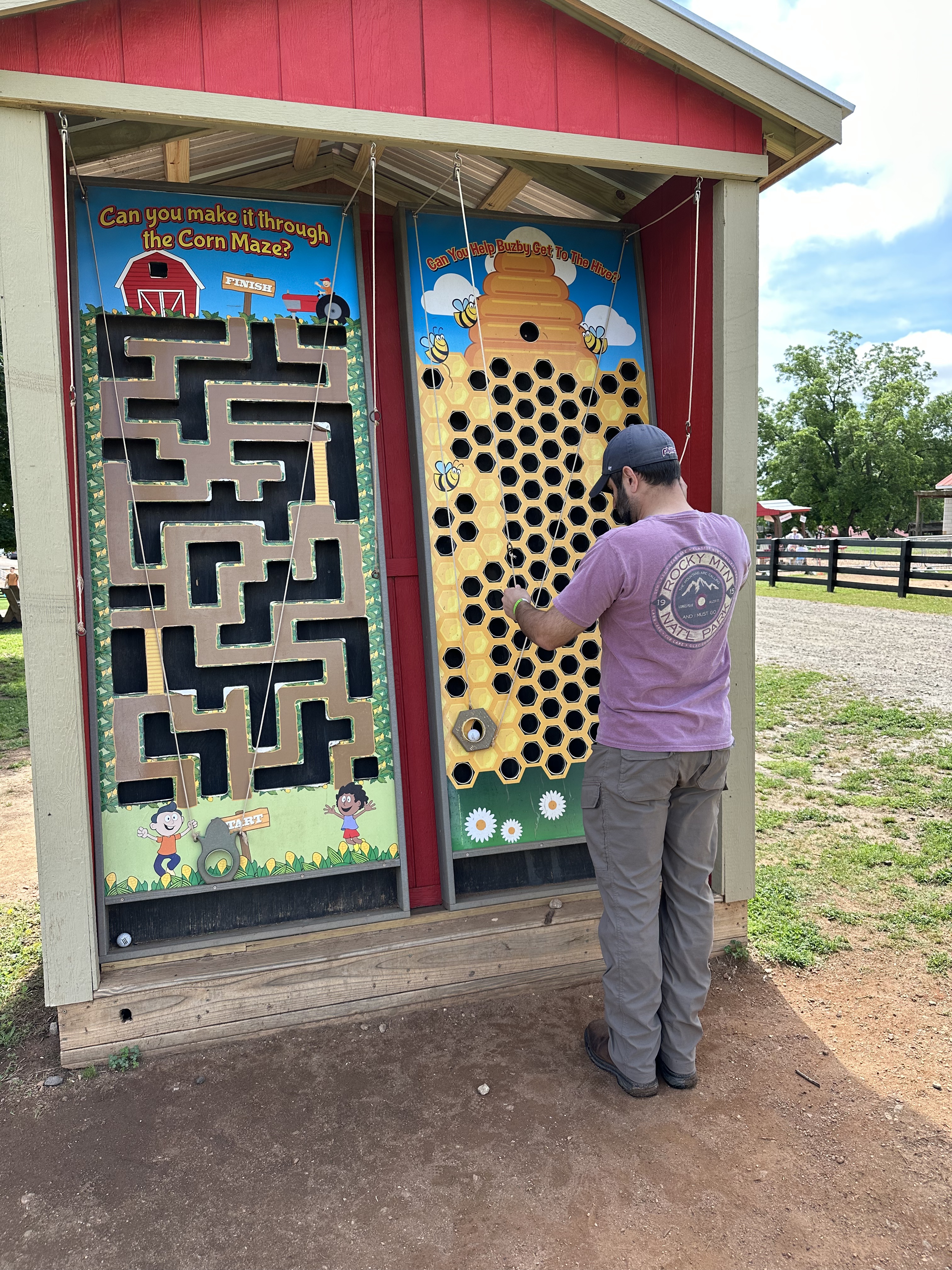 Each season brings different activities. U-pick strawberries are popular in spring and the picking season begins mid-April and ends in early summer. Other spring activities include Belle’s Barnstormer, Pedal Karts, Jumping Pillows, Cow Train, Belle’s Barnyard, Tube Slide, Corn Combine Slide, Trike Track, and Gem Mining. There are activities for all ages! As the spring seasons fades to summer, the u-pick crops also change to peaches, blackberries, blueberries, muscadines, and flowers. Fall festivities include a pumpkin patch, 4 acres of corn maze, and more outdoor attractions while Christmas brings visits with Santa!