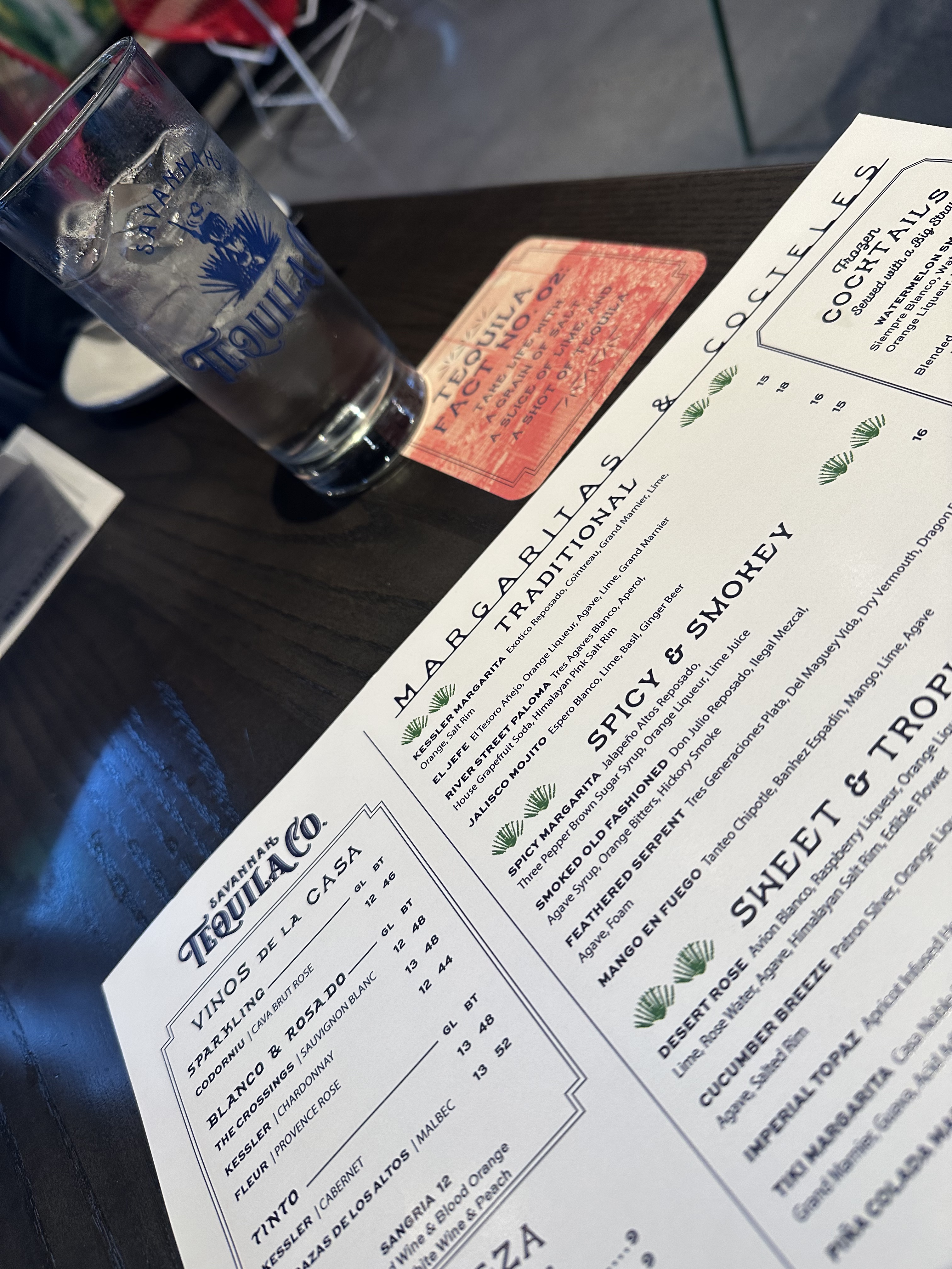 Savannah Tequila Co is one of the restaurant options and is where we had lunch. Tequila lovers rejoice because Savannah Tequila Co has a tequila menu that is as long (if not longer) than the food menu. For drinks, I had the Desert Rose drink while R had the El Jefe. We ordered the Shrimp a la Diabla Tostada to share. R had Asada tacos and I had the Baja fish tacos as our entrees. The food, drinks, and service were amazing! We were hungry and Savannah Tequila Co hit the spot.