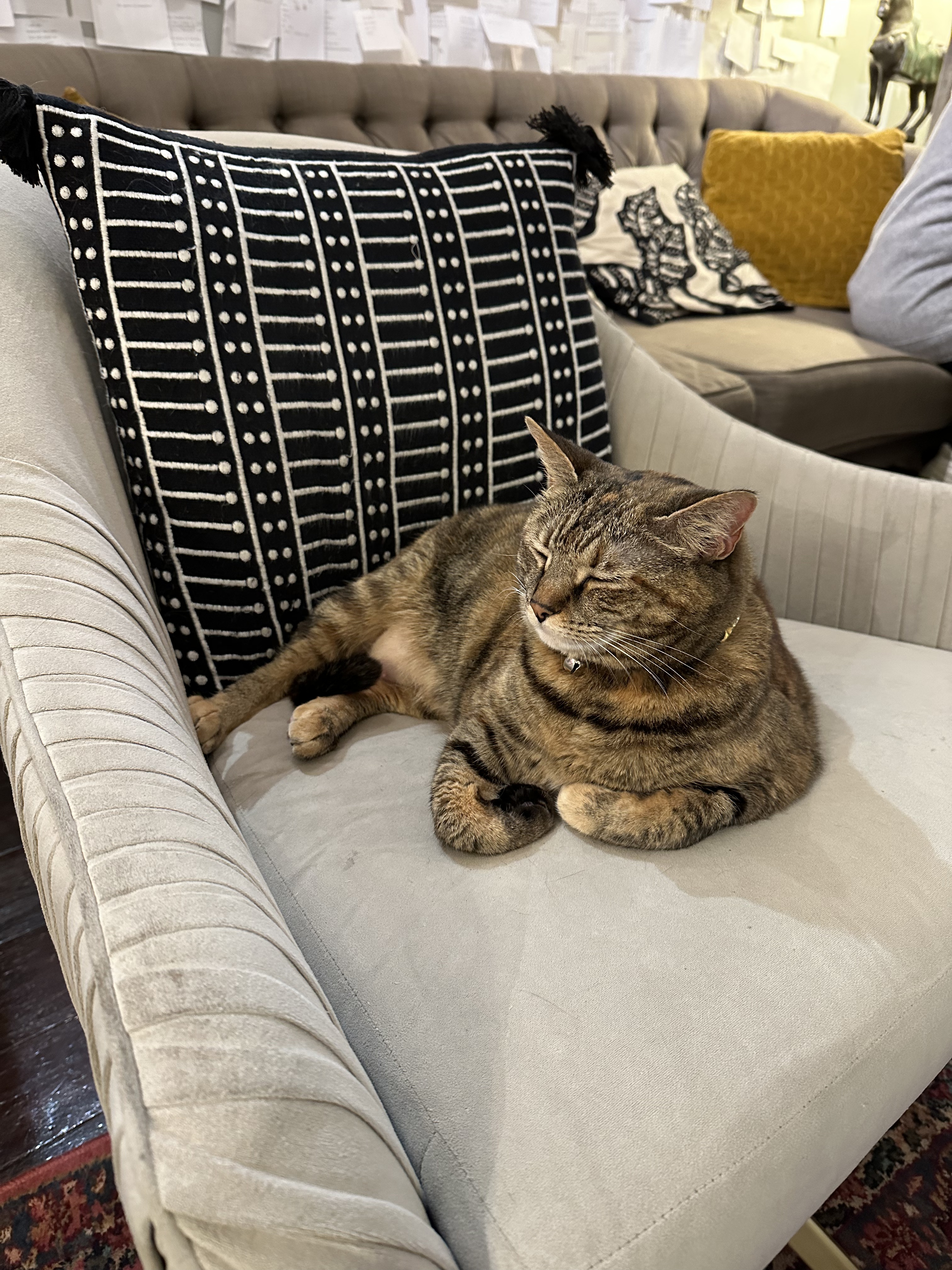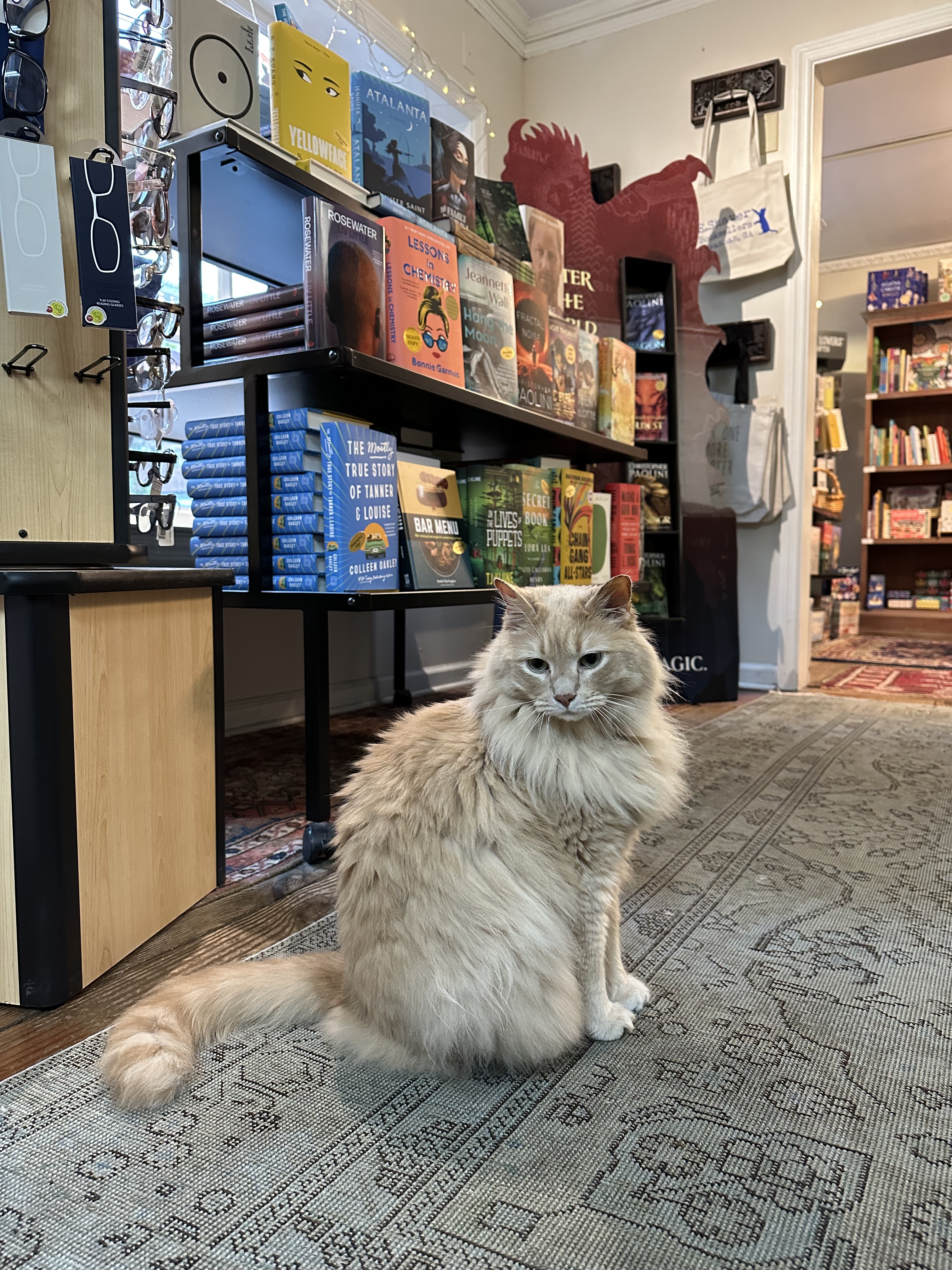 E. Shaver, Booksellers is a Savannah institution and a must visit for any book lover. The building was built in 1842 and was the personal residence of the builder, Eliza Jewett. Eliza, a real estate investor, was the most prominent female property owner and developer in antebellum Savannah. Several properties in Savannah still bear her name, a tribute to the influence and legacy of Eliza, who remained an active developer into her 70s. During the 1950’s the building became an antiques shop. In 1975, a newlywed couple from Louisville, KY visited Savannah on their honeymoon, falling in love with the beautiful city and deciding to stay. Esther Shaver was already a successful business woman with five thriving bookstore and her husband, Ed, was a prominent contractor. They sold off their businesses, relocated to Savannah, and opened E. Shaver, Bookseller. Esther remained at the helm of E. Shaver, Bookseller for 40 years until she sold it in 2015. As the new owner, Jessica Osborne was intimately familiar with the history of E. Shaver as she had been employed by Esther for several years. Soon after Jessica took the reins, some new team members came on board and feature heavily in the store’s social media presence. Bartleby and Mr. Eliot, a pair of brilliantly fluffy bookshop cats, spend their days as the unofficial E. Shaver mascots and visitors frequently stop by to capture photos of the cats napping in the windows amongst the books. The dynamic duo became a terrific trio in 2018 when Skimbleshanks joined their ranks. Jessica continued to helm the thriving business, bringing store manager Melissa Taylor in as a partner in 2020, and in 2021 the terrific trio of bookshop cats became a fantastic foursome when Morticia arrived.