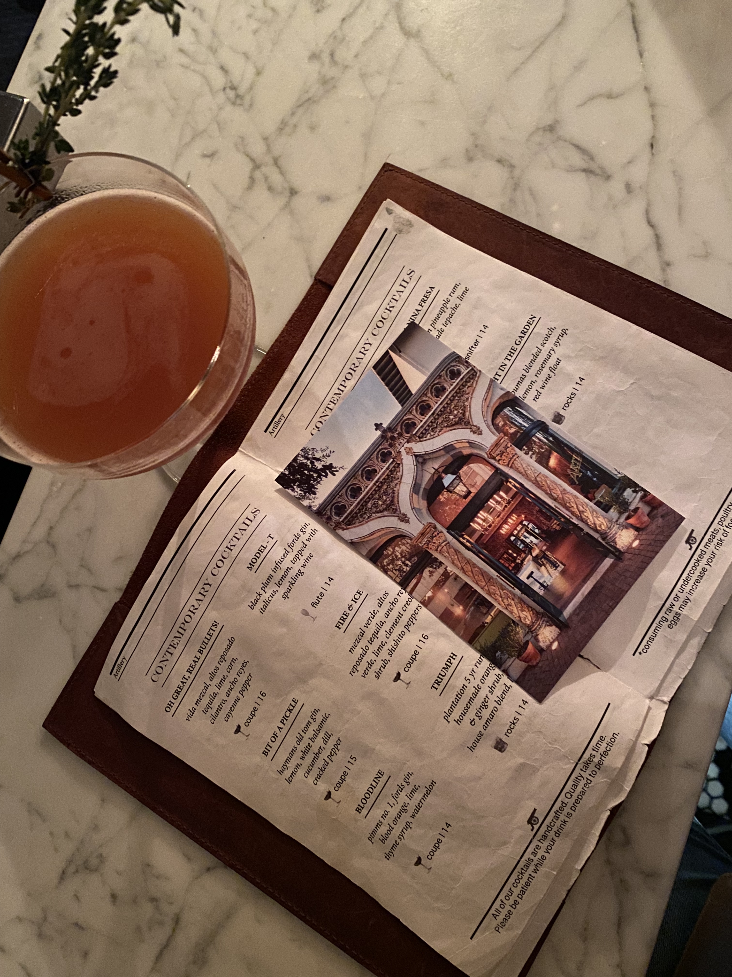 Artillery Bar on Bull street is my absolute favorite Savannah bar. This is not a River Street style bar where every surface is coated in a permanent stickiness. The whole place is beautiful, the servers and service are fantastic, and the drinks are all handcrafted and delicious. Artillery is located where the Georgia Hussars’ armory once housed the cavalry’s artillery and continues to subtly reference the history of the site with details inspired by the volunteer militia. Passerby cannot help but take in the iconic façade. Step inside the bar to cozy tables and comfy lounge chairs reminiscent of 19th century eclecticism and romanticism. If seated at one of the tables, locate a small button behind you and press it to call your server. If seated at the bar or in the lounge chairs, your server will make rounds and be available but won’t interrupt. The bar is fairly small and is only open Wednesday through Saturday from 4pm until close.