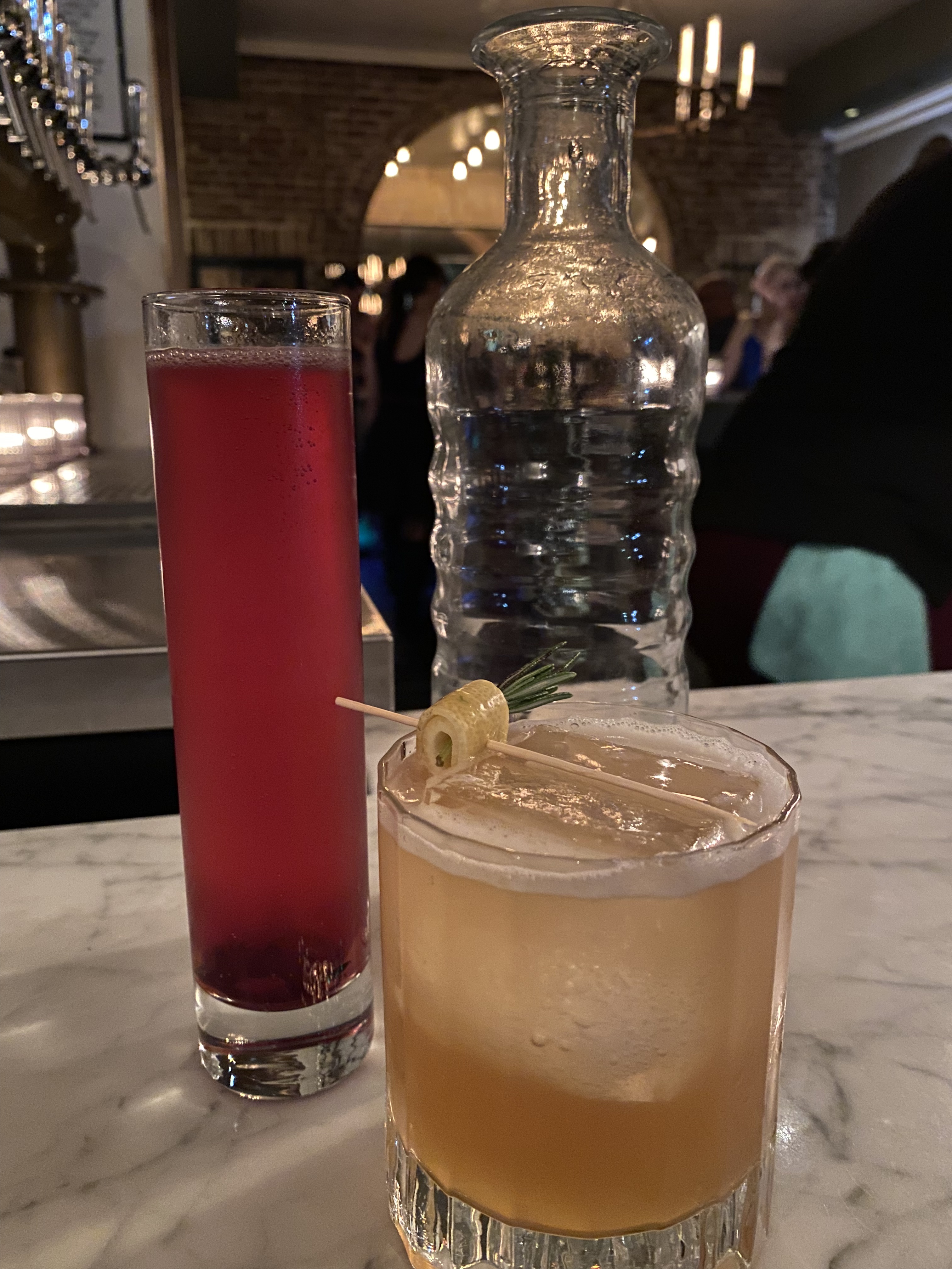 I’m not ashamed to say that R and I had four rounds of drinks. I started with the Bloodline, then had 2 Fizzy Lifting Drinks, and finished the evening with the Forsyth Park at Dark. Bloodline is made with “Pimms no. 1, fords gin, blood orange, lime, thyme syrup, and watermelon”. The Fizzy Lifting Drink is “uncle val’s botanical gin, 18.21 hibiscus syrup, lemon, honey syrup, and topped with sparkling wine”. The Forsyth Park at Dark was a recommendation from our server because I wanted to try something different. Made with “Teeling Irish whiskey, high wire amaro, lemon, blackberries, and mint”, I was pleasantly surprised at how much I enjoyed the drink, especially given that I don’t typically enjoy whiskey. R decided to stick with whiskey based drinks, his usual preference. The last time we visited I had the Bloodline, Fizzy Lifting Drink and Bit of A Pickle. Made with “haymans old tom gin, lemon, white balsamic, cucumber, dill, and cracked pepper”, Bit of A Pickle is difficult to describe unless you have tasted it. It almost tastes like pickle juice yet has an oddly lite and refreshing kick to it. Honestly, we’ve never had a bad drink here. I do suggest asking for some bar snacks which include variations of Chex-Mix, spicy trail mix, and salted nuts. Needless to say we had a happy buzz going when we left and that made the walk back to the hotel pleasant as we chatted and laughed. Though the day did not go as originally planned, it turned out to be a relaxing day with my sweet husband.