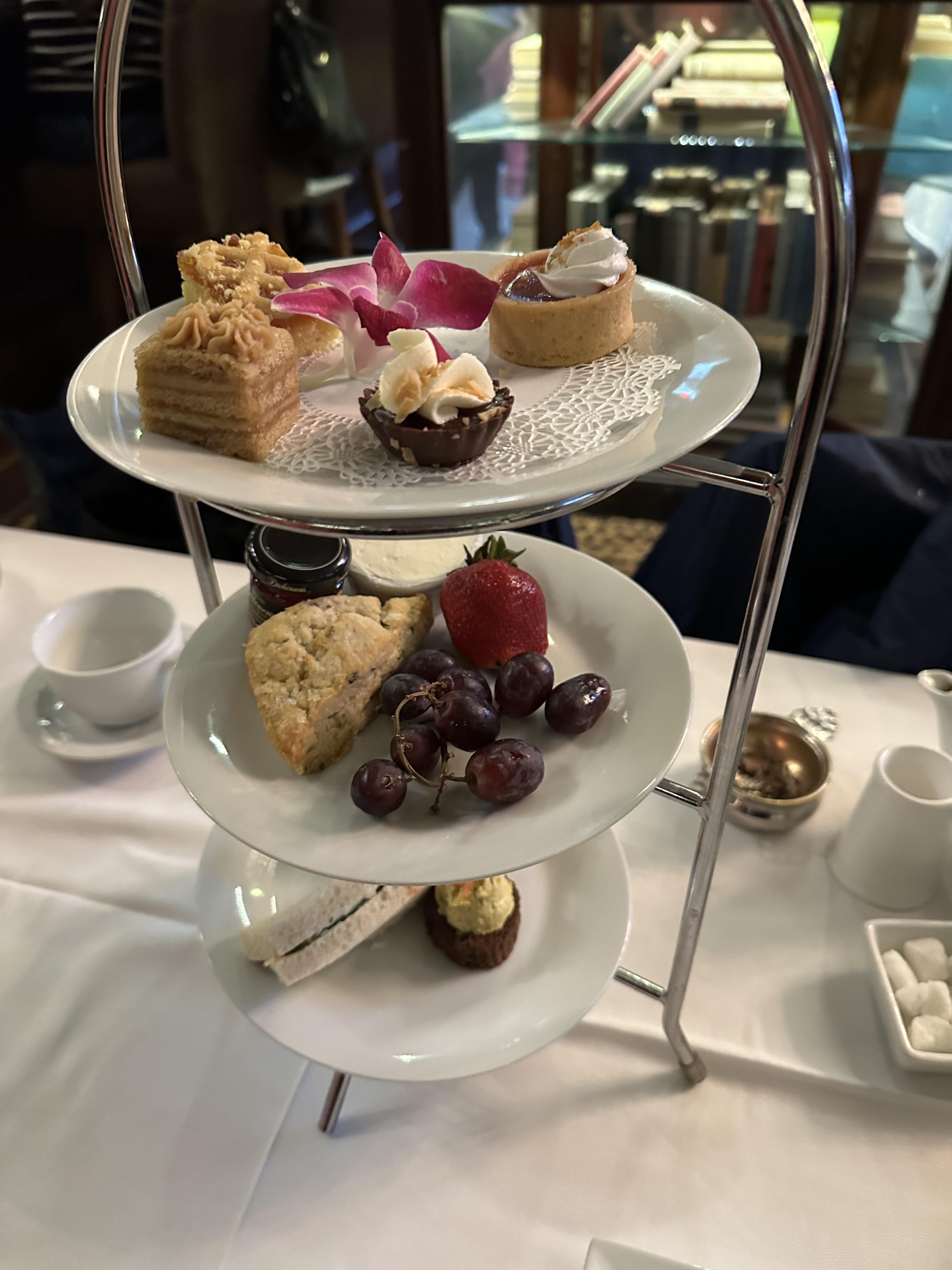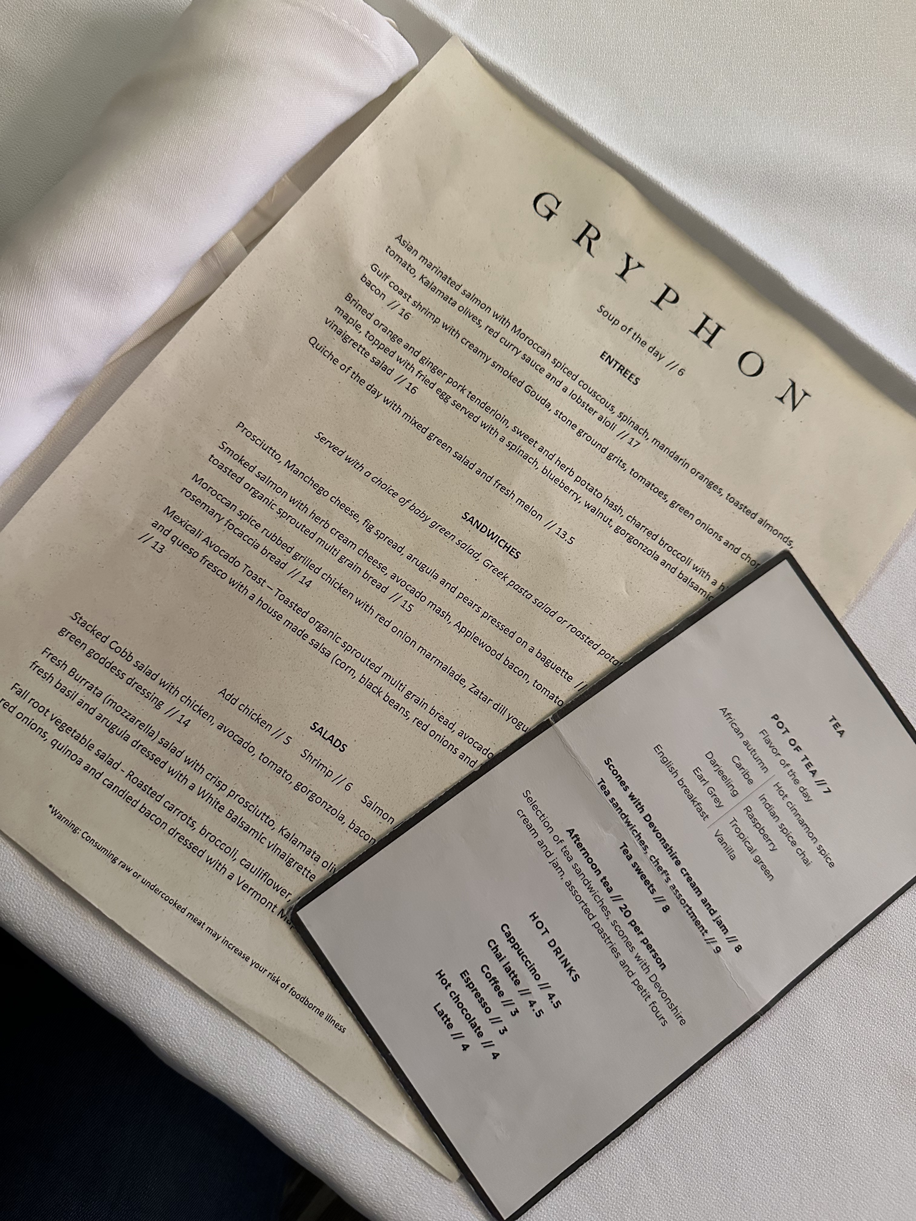 Next up we stopped in at Gryphon for lunch. The exterior of the building was under construction during our visit but was still easy to locate at the corner of Madison Square. The elegant interior features white-tablecloths, carved mahogany bookcases, and original stained glass panels. The building itself has a rich history, having been an ice cream parlor and a pharmacy at various points. SCAD (Savannah College of Art and Design) purchased the historic building, like many others in the city, and use it to continue Savanah’s history of hospitality and food through Gryphon. The staff are all SCAD students who are happy to provide a short history of the building and point out specific features like the gryphons holding the stained glass lamps in their mouths, the stained glass pharmacy panels, and the original pharmacy drawers still labeled with the names of the medicines they once held. The café serves seasonal options including soups, salads, and sandwiches. I was cold and wet so I opted for asparagus soup and the afternoon tea service while R chose a latte. The asparagus soup was hot and delicious with just a hint of asparagus flavor. The tea and finger sandwiches were what I expected and were good. I was slightly disappointed in the sweets that accompanied tea though. Not because they were bad but they weren’t flavors I am familiar with or necessarily a fan of (apricot and lavender for instance) and they weren’t as sweet as I would like. This is all down to personal preference and should not hinder someone else’s desire to go.