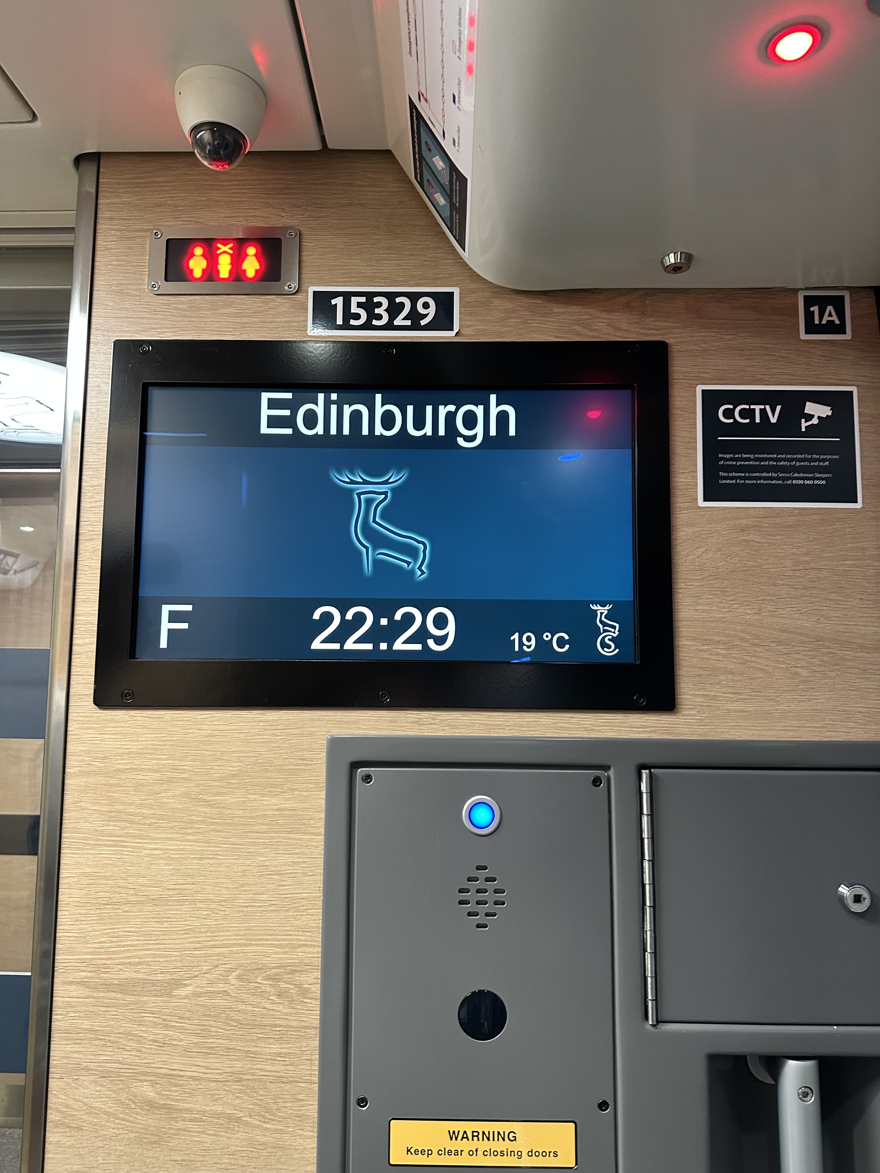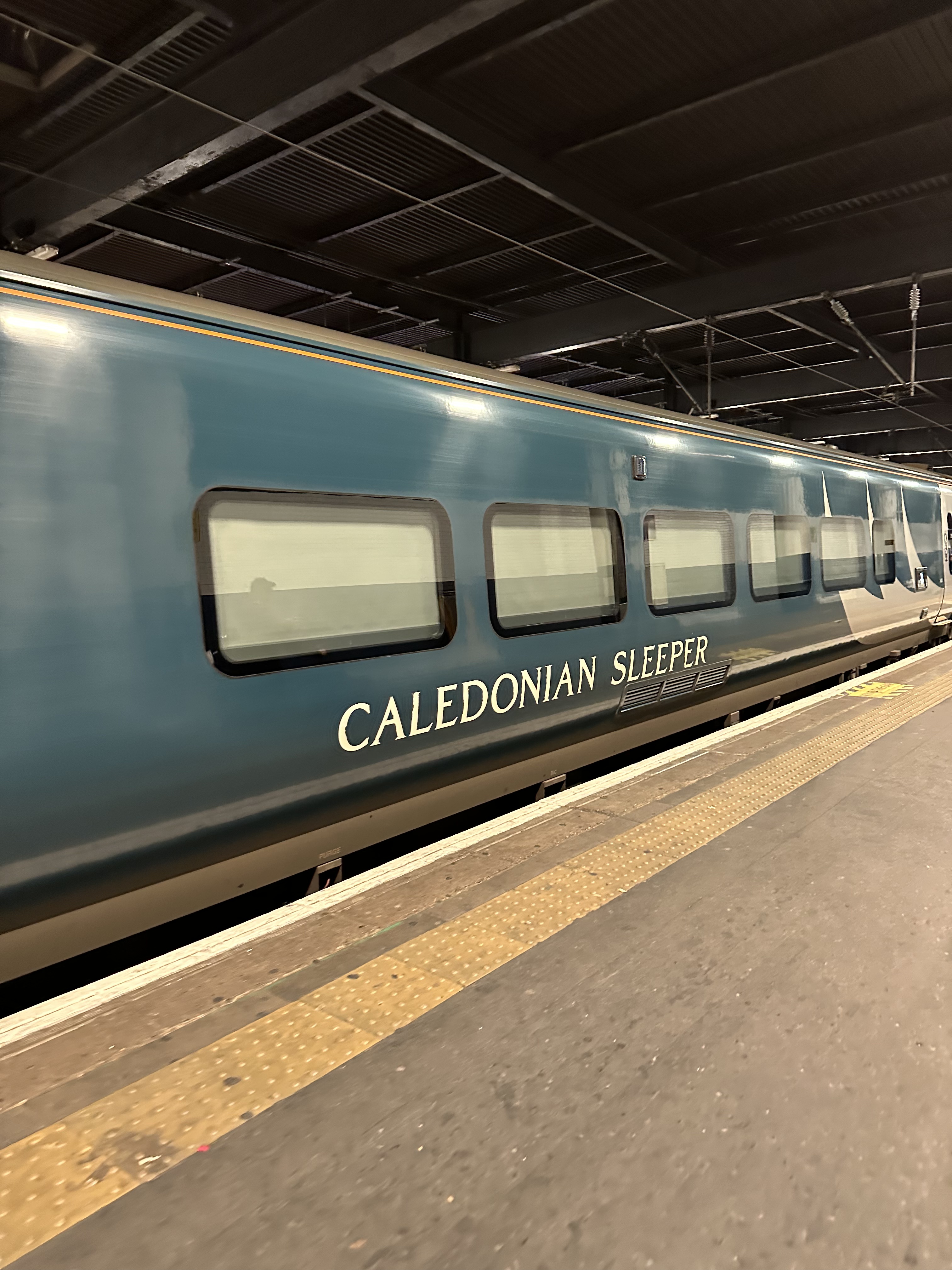 I’m excited for a first time adventure … we are taking the Caledonian Sleeper train to Edinburgh tonight! We ordered a car to take us to London Euston Station to avoid taking our luggage on the tube. While the tube is the less expensive option, it would mean wrangling luggage up and down stairs, onto the tube, etc., so we opted for the easier option. We are booked in a Club Twin cabin which means we have our own cabin with an ensuite and twin-sized bunk beds. This cabin includes lounge access at the station. Arriving at the station at 9pm means that the lounge was open but with limited services which include light, prepackaged snacks, coffee, tea, and sodas. There are also spacious showers and plenty of toilets. The lounge is a comfortable place to sit and wait without being in the middle of the station.