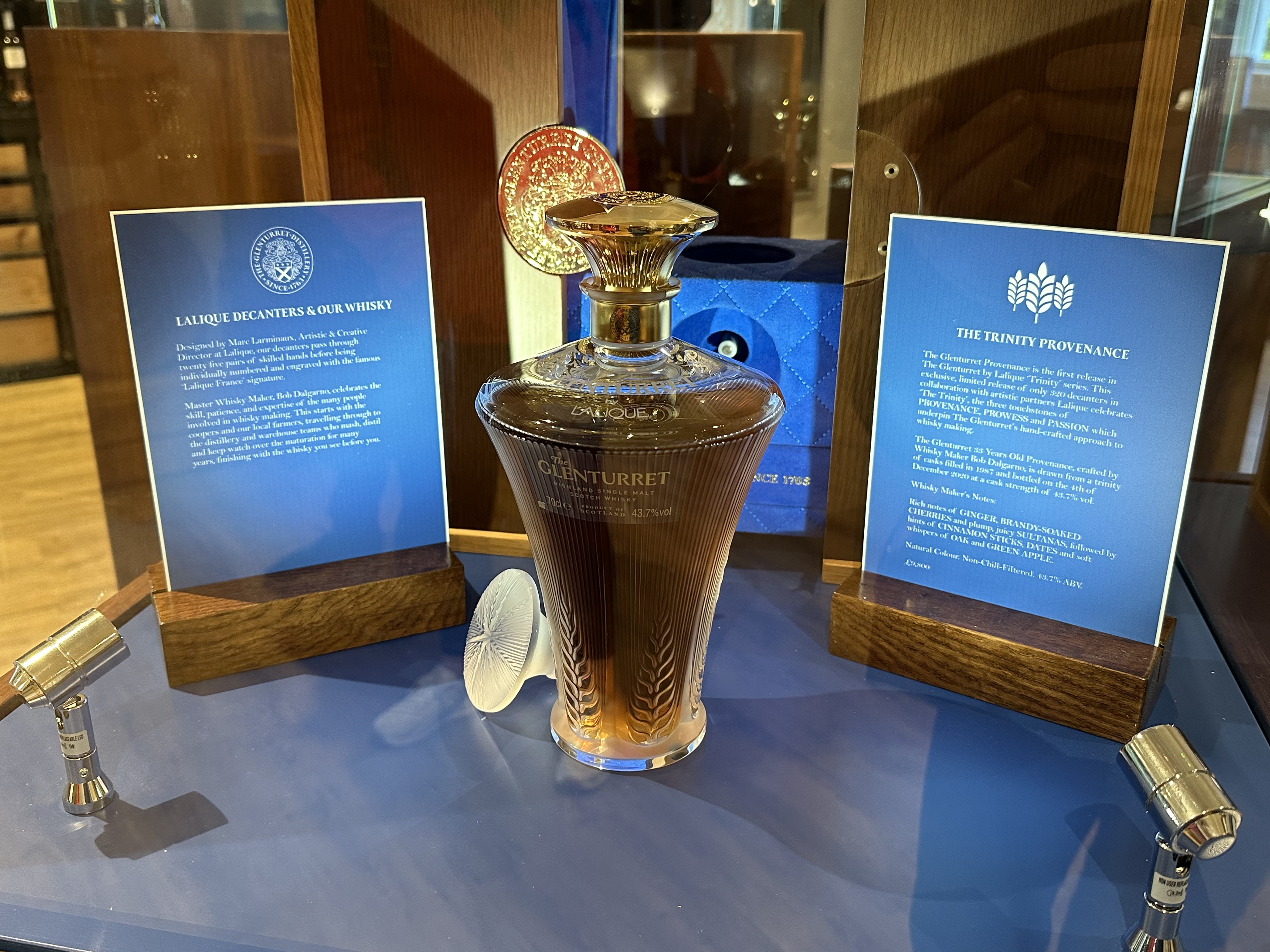 We also stopped in the gift shop which contains an ample selection of Glenturret products as well as a Lalique shop. Glenturret and Lalique have developed a partnership and Lalique makes some breathtakingly beautiful glassware which beautifully showcases the creations of Glenturret. It is literally (and figuratively) a beautiful partnership. Glenturret may be a little out of the way for most itineraries but I consider it a must do. (It is absolutely worth renting a car just for this stop!) Glenturret is becoming a full service destination with a Michelin star restaurant already on site and plans underway to add lodging which will make for a perfect overnight stay.