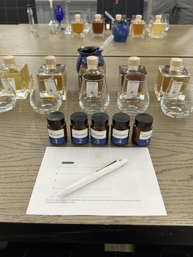 Stuart also lead the make your own bottle portion R and I did. We were taken to a private tasting room which was already prepared for us with aromatics samples (much of Scotch making is in the nose) and five different Scotches to sample. We rated the Scotches using a scale of 1 to 5 based on how much we liked (5) or did not like (1) them. Once we rated all five Scotches, we developed a blend of them to create our own unique Scotch and get to take home the 100 mL bottle!