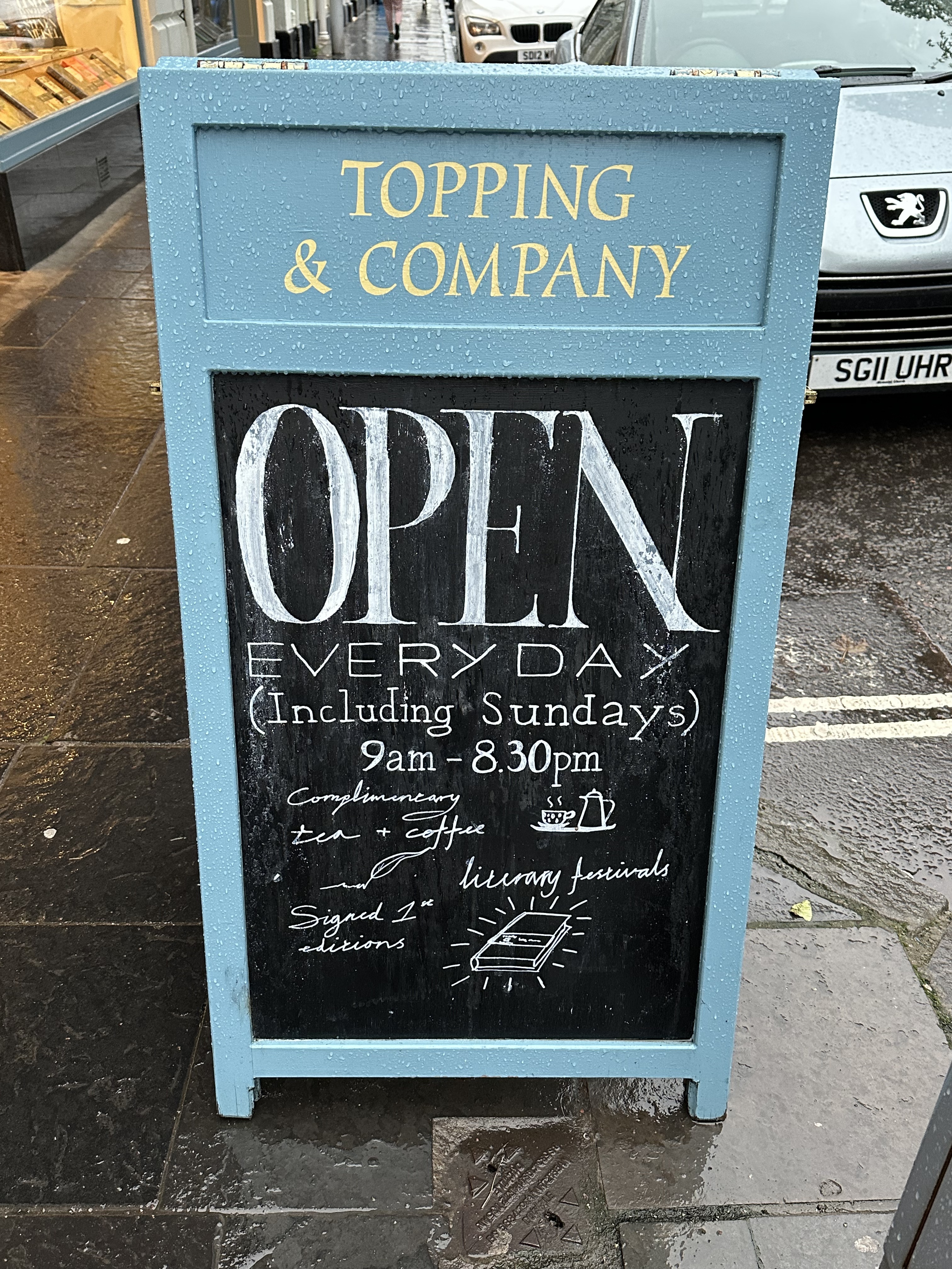 Unfortunately, the car was giving us the same error messages and resetting it did not work. We called roadside assistance again and they told us it would be an estimated 60 to 90 minutes wait. While we certainly were not thrilled with this turn of events, we also didn’t have much choice so we opted to make the best of it. Hams Hame Pub and Grill was on the corner between the Old Course Shop and the parking lot so we went in for a pint. I was going stir crazy and there was a bookstore nearby so I walked there while Robert stayed at the pub.