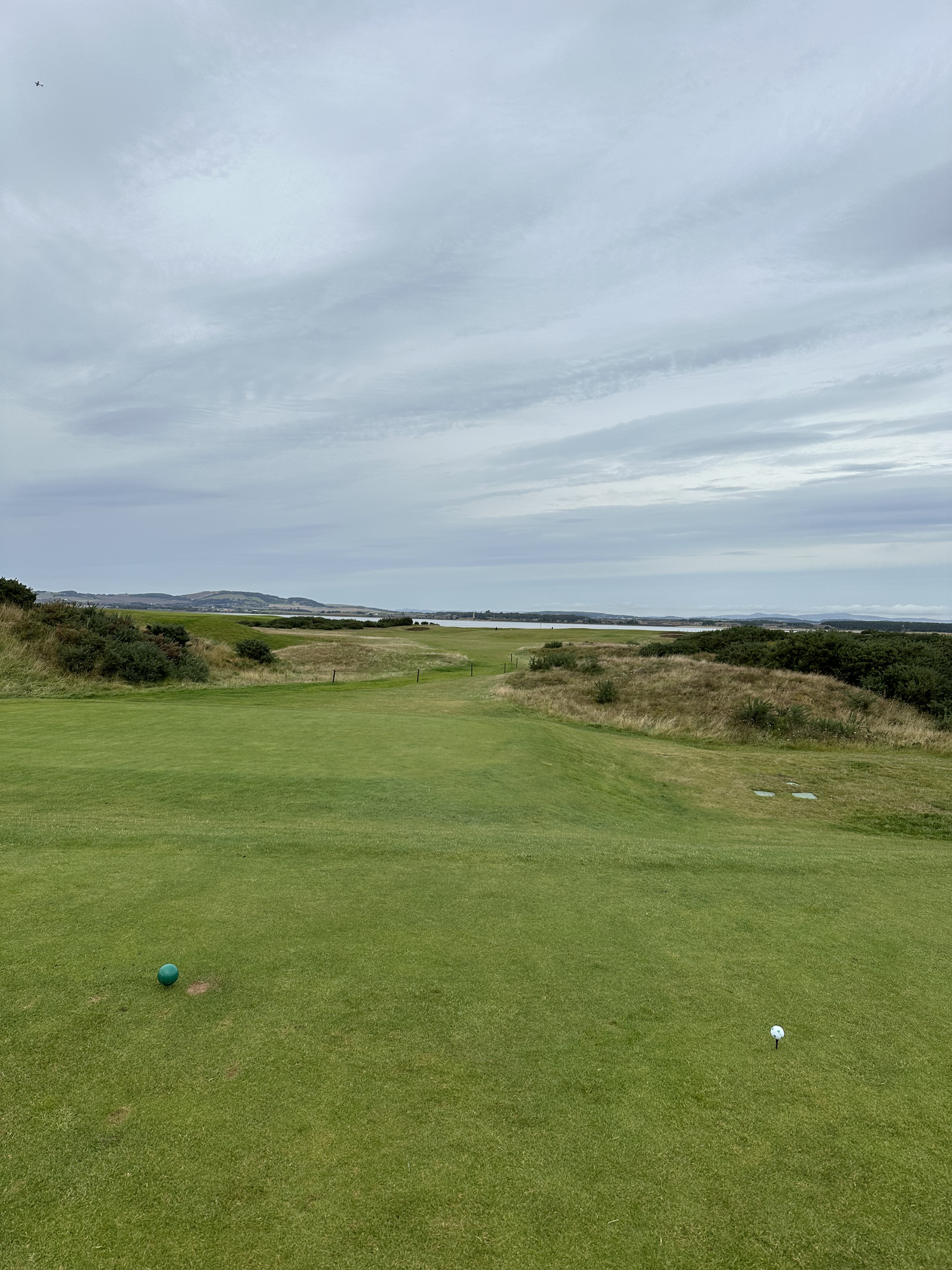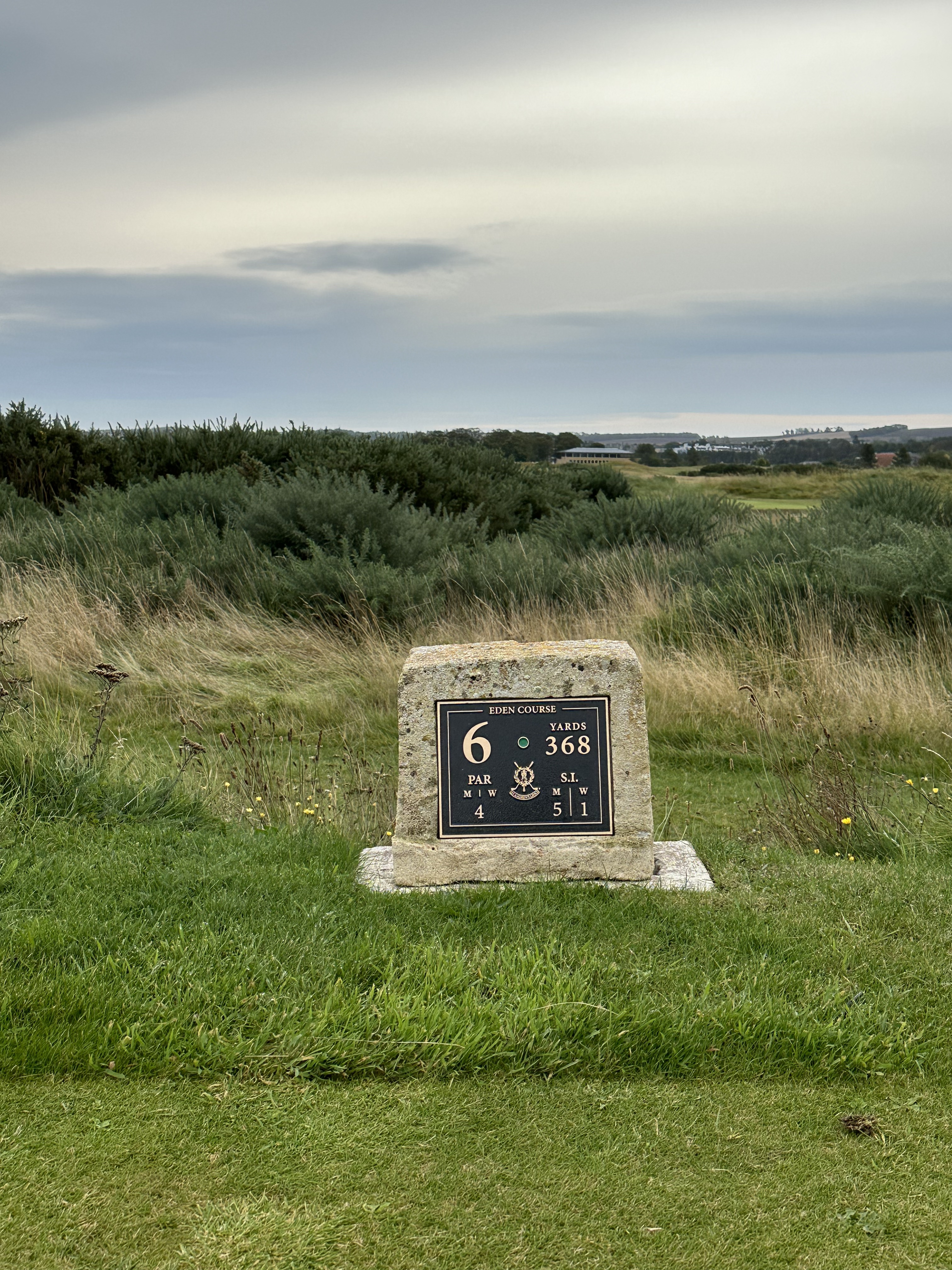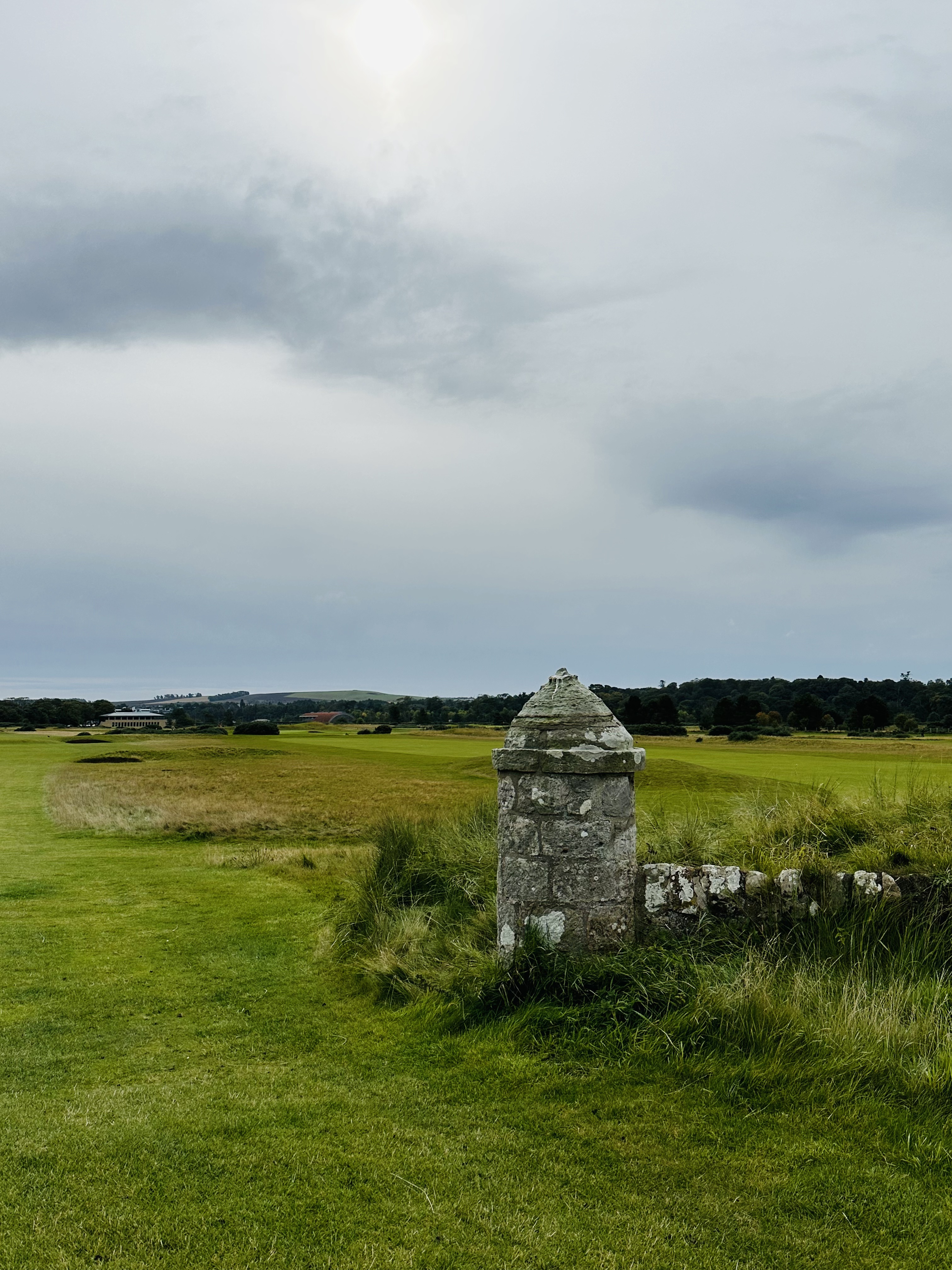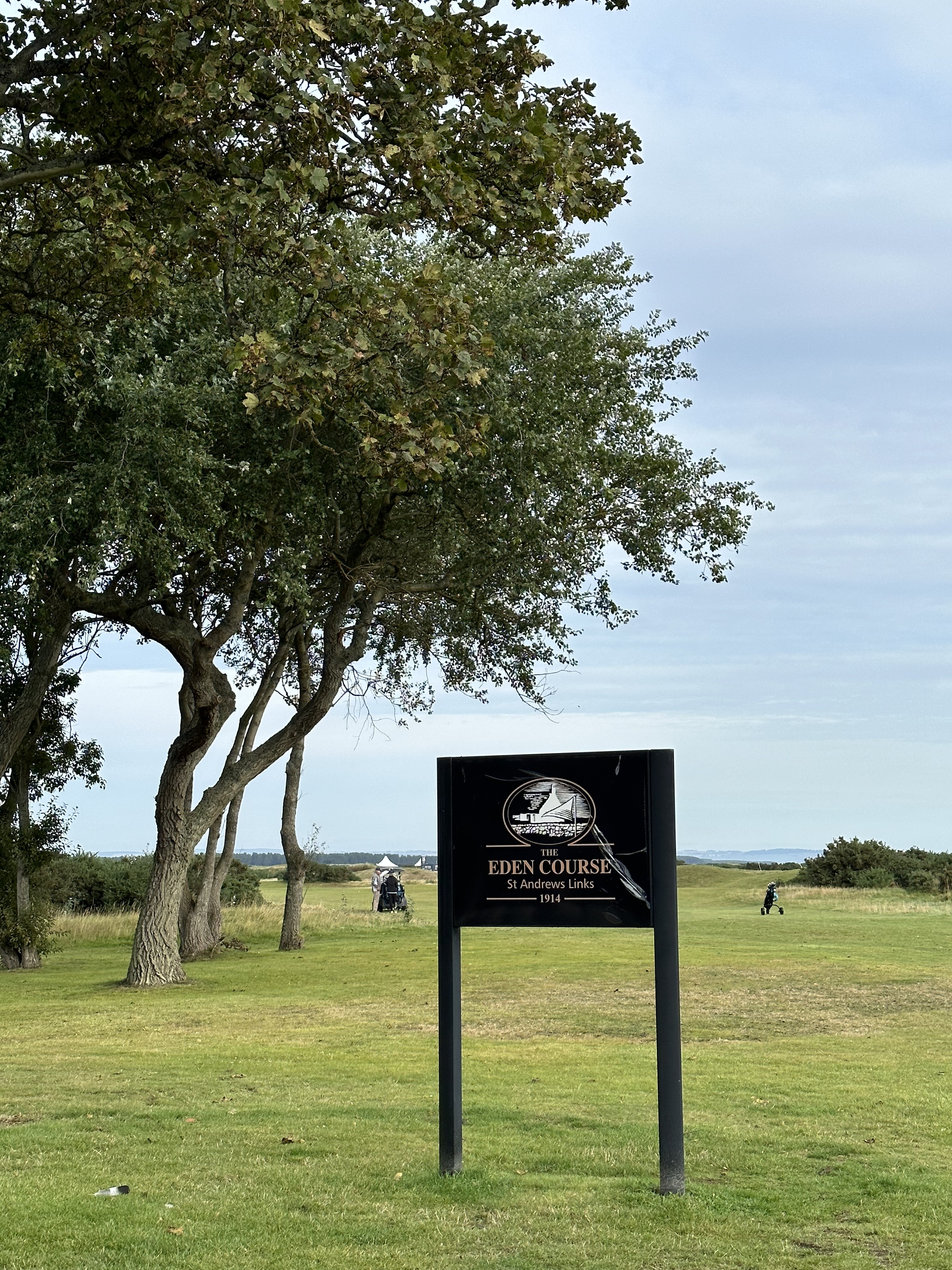 We arrived in St. Andrews and proceeded to the Eden Clubhouse to check in and get ready. I reserved a 10:40am tee time for us on the Eden course a few months in advance and was able to confirm my first choice for date and time. I did not attempt to reserve the Old Course because I am still learning the game, the rules, and taking lessons to improve my skills. (Interestingly, the Old Course and the Eden Course run parallel on some holes so we did see bits of golf’s most famous course.) We checked in at the clubhouse, picked up our rented clubs, and hired a pull trolley for the day (side note: I had never used a trolley before but I really like them; it’s like a lightweight stroller for your golf bag). All the courses at St. Andrews are walking courses with carts only permitted on specific courses and for players over age 65.