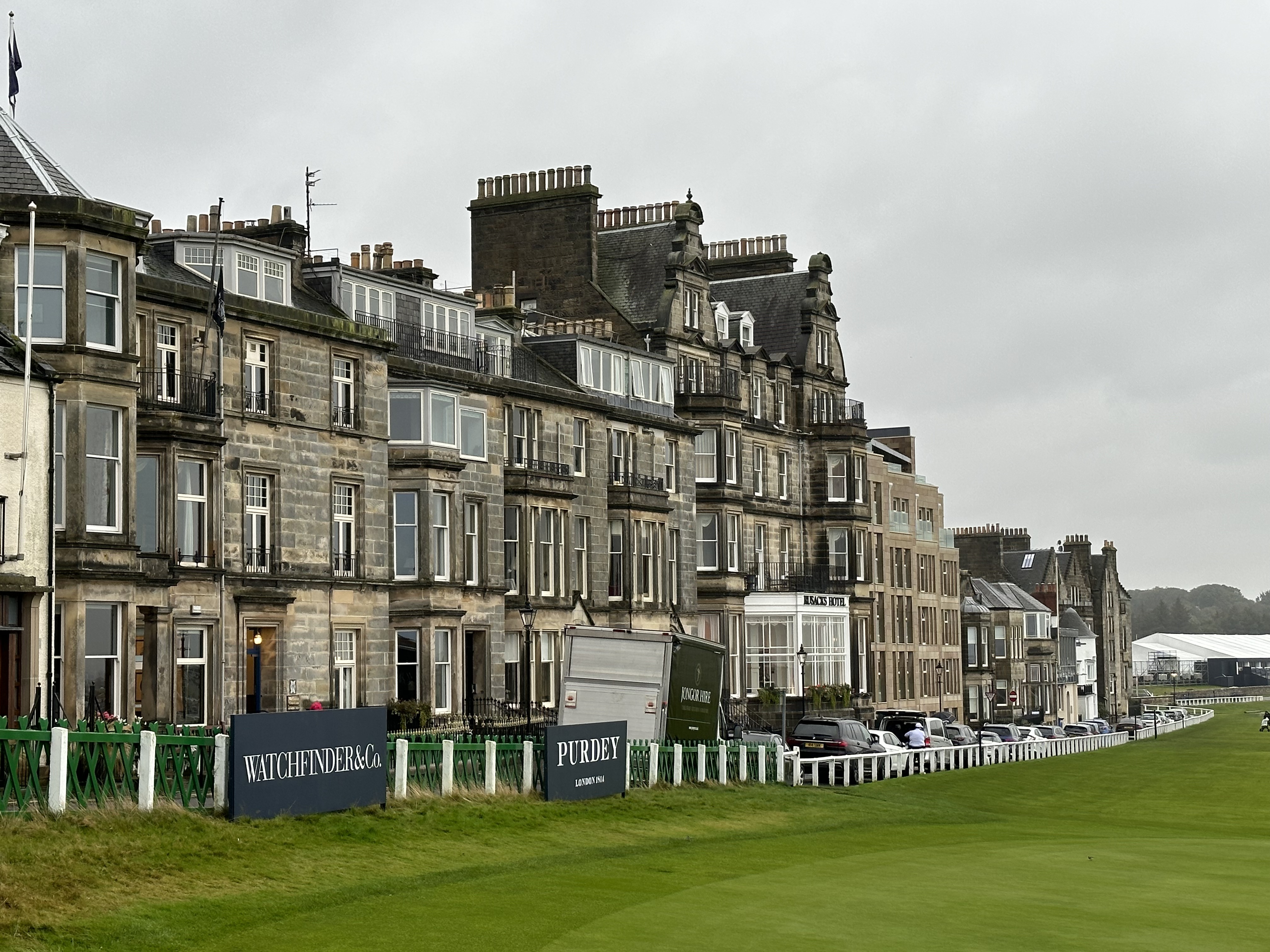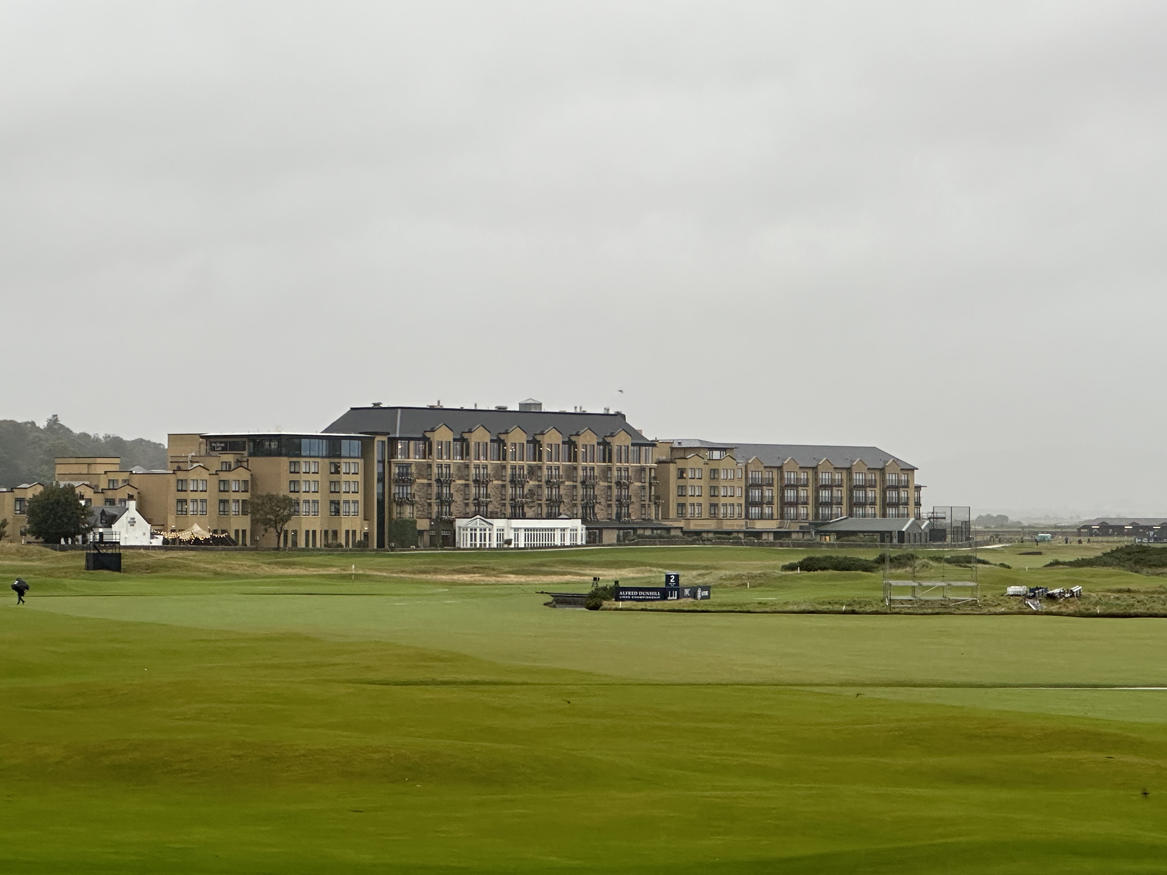 We finished the 18th hole and returned our clubs and trolleys before making our way to the Tom Morris Bar and Grill for lunch. We had a round of drinks with lunch and enjoyed views of the Old Course Hotel, Golf Resort and Spa while we dined. The food and service were good and we were able to stay dry as the rain intensified. The pro shop offers some nice souvenirs. I highly recommend purchasing a bag tag as some of them can be engraved with the date you played and make really nice ornaments for the Christmas tree.