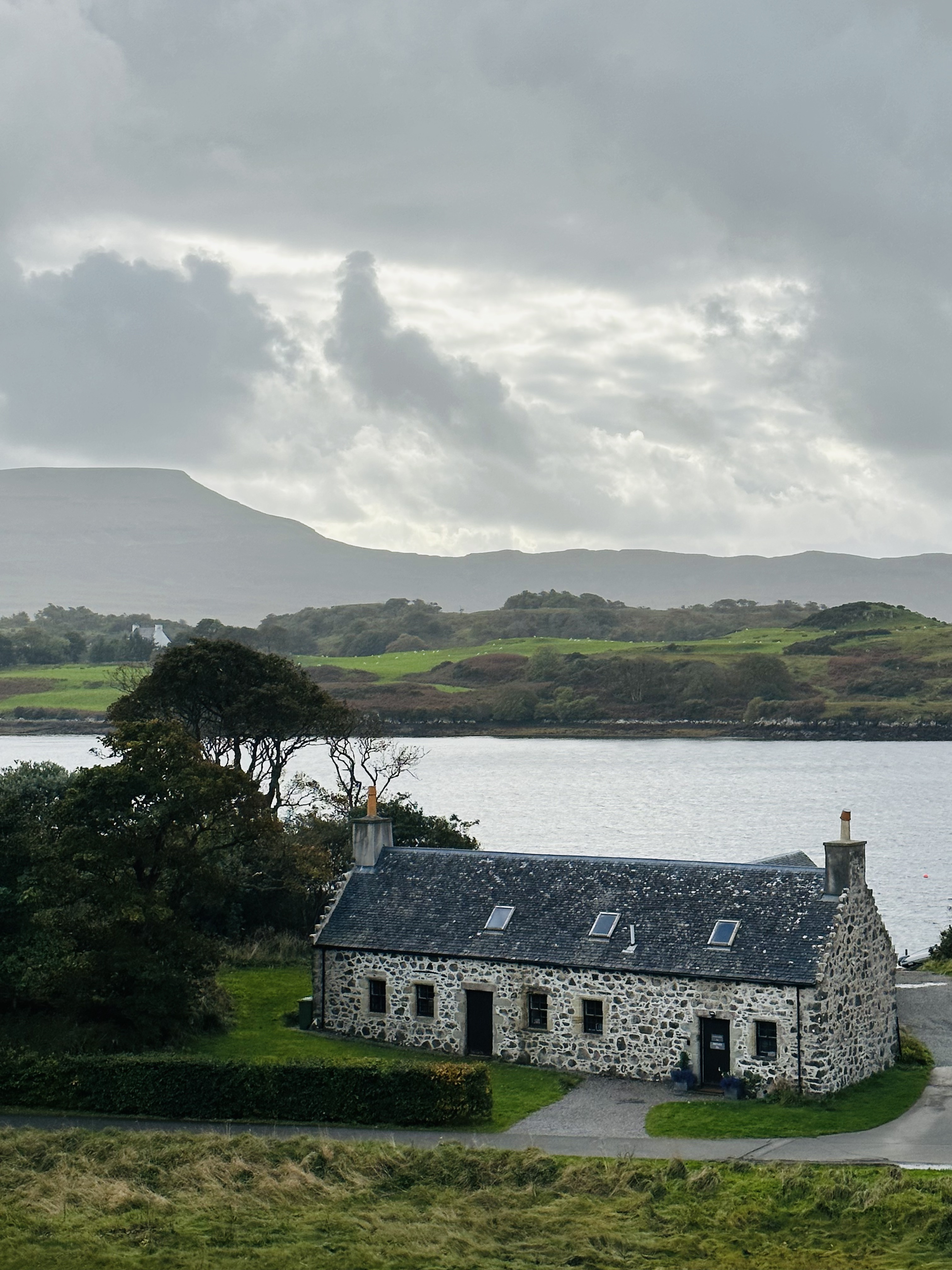 We opted for an early dinner at The Lower Deck Seafood Restaurant in Portree. The restaurant opened at 5pm and we joined the queue that was already forming at approximately 4:30. We thought the line, in combination with favorable Google reviews, was an indication of the quality of the establishment and, most unfortunately, we were disappointed. I rarely give a negative review and instead try to find the positives but this one was hard. We ordered the salmon served with couscous for myself and J, R ordered the fish and chips, and J ordered a fried seafood platter. My salmon was quite good in terms of flavor and texture but it was served over a curry-flavored couscous which was not so appetizing and made the meal feel disjointed. It was almost like the couscous had been used for something else and they threw it with the fish to move it. J’s salmon had several pin bones which was also disappointing. I know it’s fish but I have never seen anyone served a salmon filet with that many pin bones still in the filet. I should have realized something was wrong with R’s fish and chips when he was primarily eating the fries. The poor man didn’t say much until we were out of the restaurant but he described the fish as being inedible (somehow freezer burnt and over-fried). We had a good laugh at the misfortunes of this particular dining experience but, all things considered, one bad dining experience won’t ruin our trip. The Lower Deck only accepts cash so be prepared if you opt to dine here. In fairness, we were treated to a view of the harbor with a lovely and vibrant rainbow as we waited in the queue.
