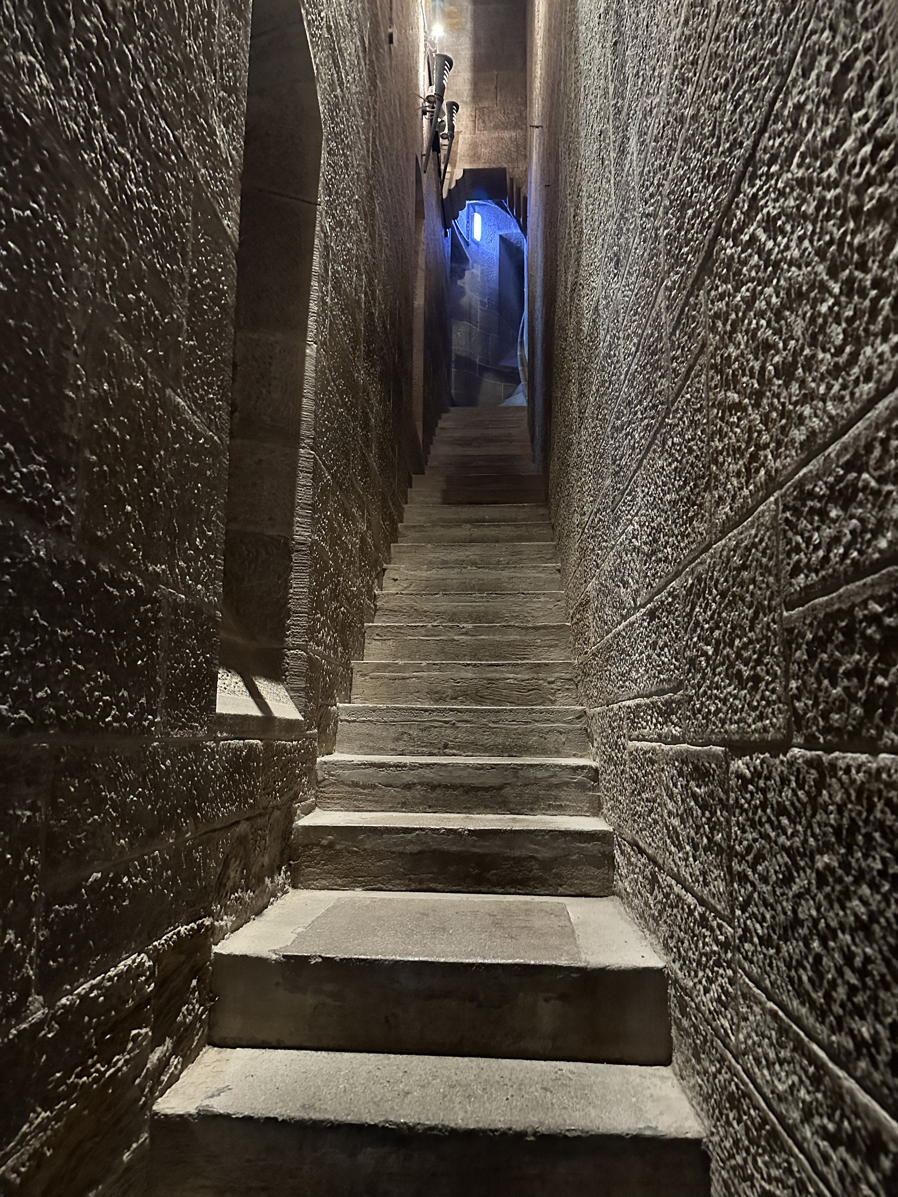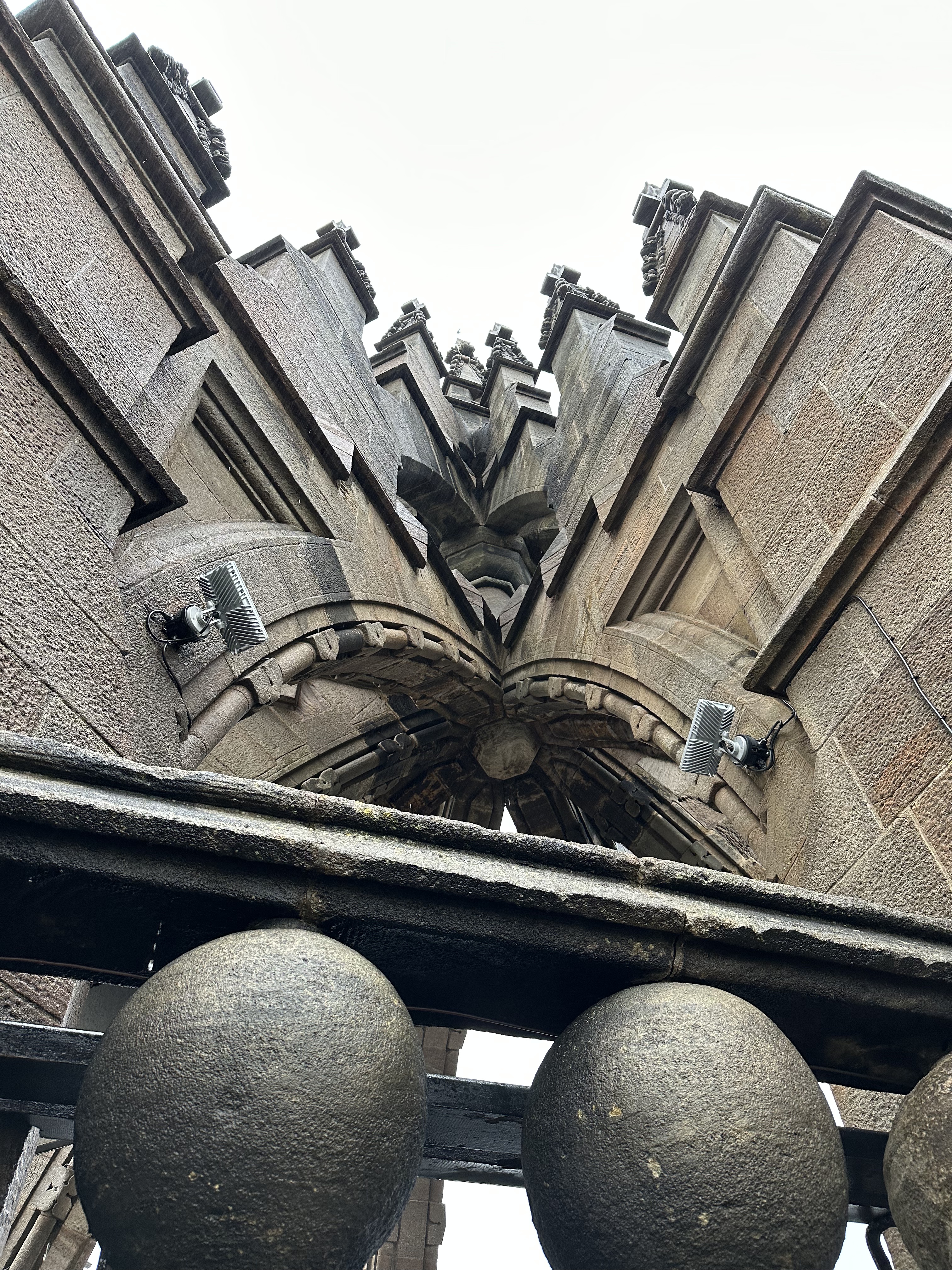 If you conquer all 246 steps you will be rewarded by summiting the 220 foot tower to experience incredible panoramic views in all directions, including up, as you take in The Crown. Bundle up as it tends to be windy at the Crown but the views are worth every second, even in the rain. The vantage point is particularly amazing in clear weather but we don’t go to Scotland and expect all sunshine! The spiral staircase is narrow and winding with a handrail on one side only. Try to pause at each floor to allow others to pass rather than passing on the staircase. It is possible to pass on the stairs but someone will be hugging the stone spiral in the center and standing on the narrowest steps, while others utilize the handrail and wider steps on the outside.