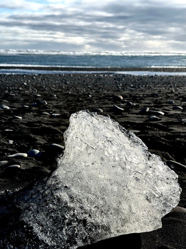 Diamond Beach gets its name from the small chunks of ice that, with the right lighting, look like massive diamonds against the black sand of the beach. It can be a fun stop but the appearance changes drastically throughout the season. The amount of ‘diamonds’ is heavily dependent upon how much calving has happened at the main glacier so there are some times when you can’t walk without tripping over ice diamonds and other times when there are hardly any ice diamonds at all. It’s a good opportunity to walk along the black sand beach, take in the scenery, and stretch your legs before a car ride.