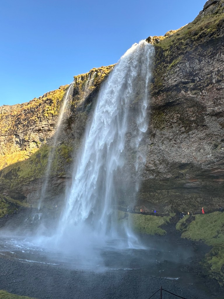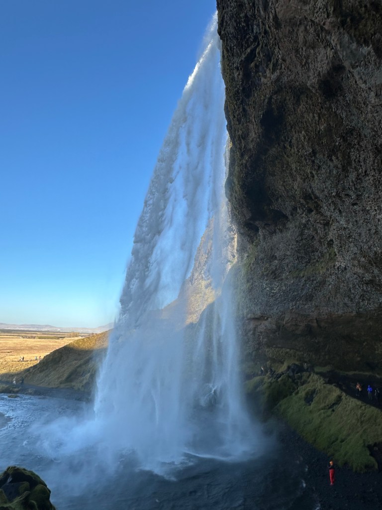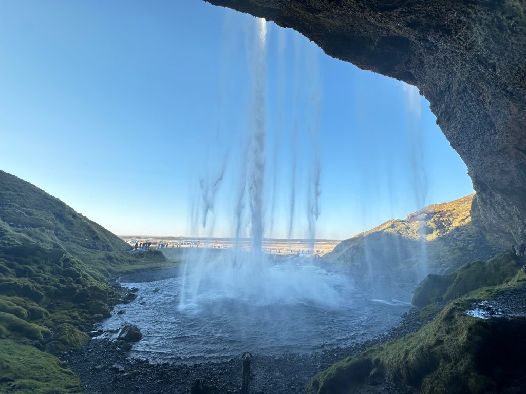 We are driving to the Hveragerdi area and making a stop at Seljalandsfoss Waterfall to help break up the drive. Although we did stop here a couple days ago, this time we are completing the walking loop around the waterfall. Seljalandsfoss Waterfall is a pay to park lot and a great place to use the facilities, grab a small bite and a drink, and peruse the gift shop. They have some fun Icelandic gifts for family and friends, and they fit a reasonably wide range of price points. The walk up to the waterfall is easy, the sound of the crashing water growing louder with each step. Following the path counterclockwise, walk toward the right side of the waterfall as you are looking at it. The path does get wet, slippery, and uneven once at the base of the waterfall so exercise appropriate caution and be prepared to get wet. You do have some control over how much mist you encounter based on how close to the waterfall you get but the entire area has some fine mist. Continue following the path behind Seljalandsfoss, eventually returning to the front side of the fall on the other side.