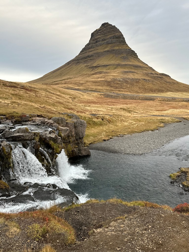 Continue along highway 54 taking in the coastal scenery and towns. Soon enough, Iceland’s most iconic landmark will come into view. Together, Kirkjufell and Kirkjufellsfoss waterfall form one of the most famous Icelandic landmarks. Kirkjufells is the pointy mountain that graces the cover of Icelandic travel books, postcards, and the Hollywood big screen. (It also reminds me of an elf’s hat because of the shape and curve.) Kirkjufells is only about 1250 feet tall but is undeniably iconic. Park in the pay lot and follow along the gravel path (walking away from Kirkjufells) for an easy and short 5 minute walk to Kirkjufellsfoss. This is your opportunity to snap your own version of the iconic photo of Kirkjufellsfoss in the foreground and Kirkjufells looming in the background. You don’t need much time at this stop but it is worthwhile.
