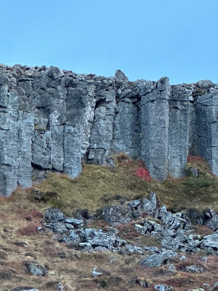 We got an early start driving from Borgarnes and were rewarded with some amazing sunrise views over the flat terrain. Our first stop of the day was Gerduberg Basalt Cliffs which are Iceland’s longest chain of basalt cliffs. The cliffs are a volcanic formation of interlocking hexagonal pillars. The cliffs stand out sharply amongst the otherwise flat terrain and are a reminder of Iceland’s tectonic and geothermally active areas. While you may be able to hike up the cliffs for a better view, you must be surefooted and have sturdy shoes.