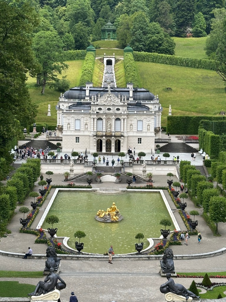 Just a short drive from Ettal, Linderhof Castle offers a glimpse into the opulent world of King Ludwig II. Though smaller than Neuschwanstein, Linderhof impresses with its Rococo interiors, mirrored walls, and gilded furniture. The surrounding gardens, meticulously landscaped with fountains, grottos, and statuary, make it one of Bavaria’s most romantic destinations. It is easy to understand why visitors call this castle a miniature Versailles.